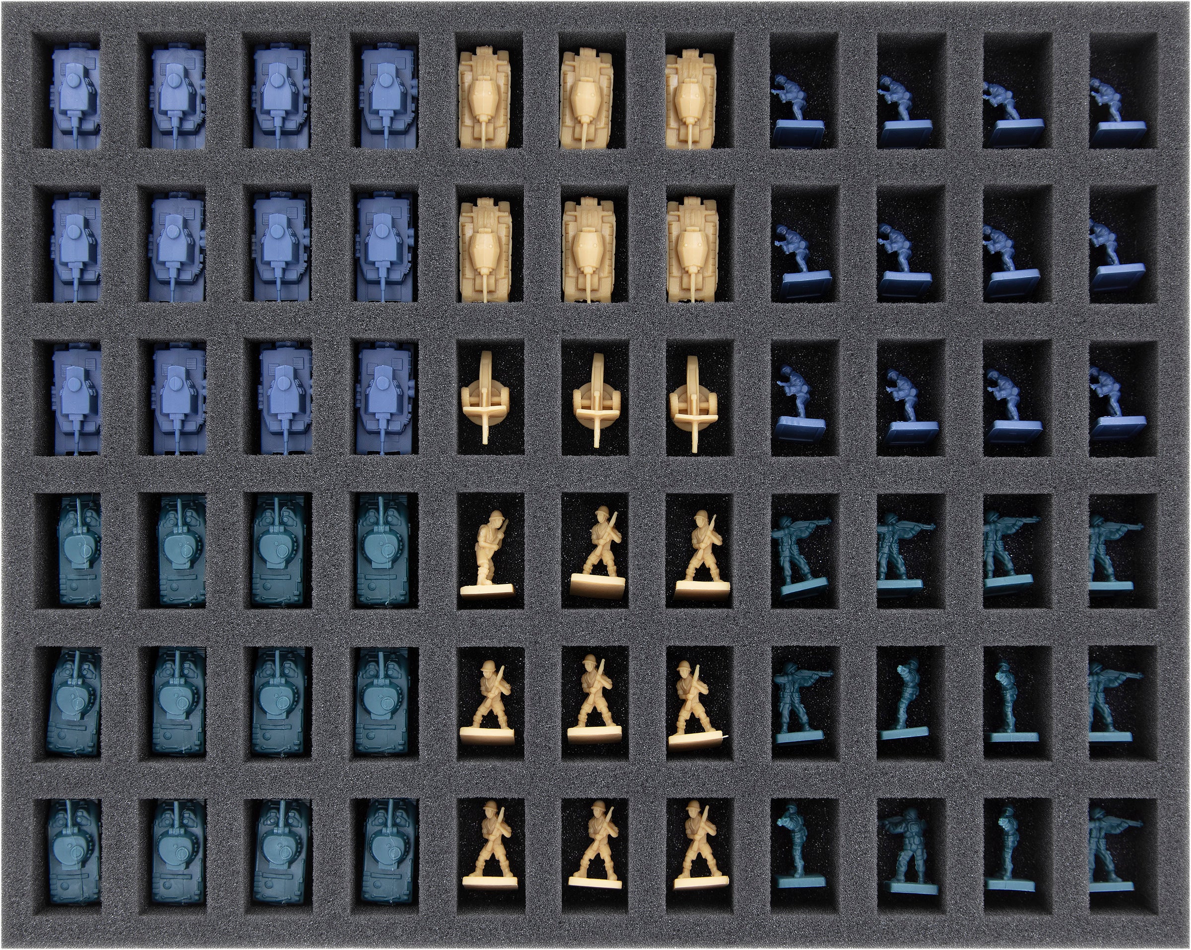 - 1 Full-Size foam tray with 66 compartments for e.g., armored vehicles, barbed wire, infantry (FSMEOU030BO)