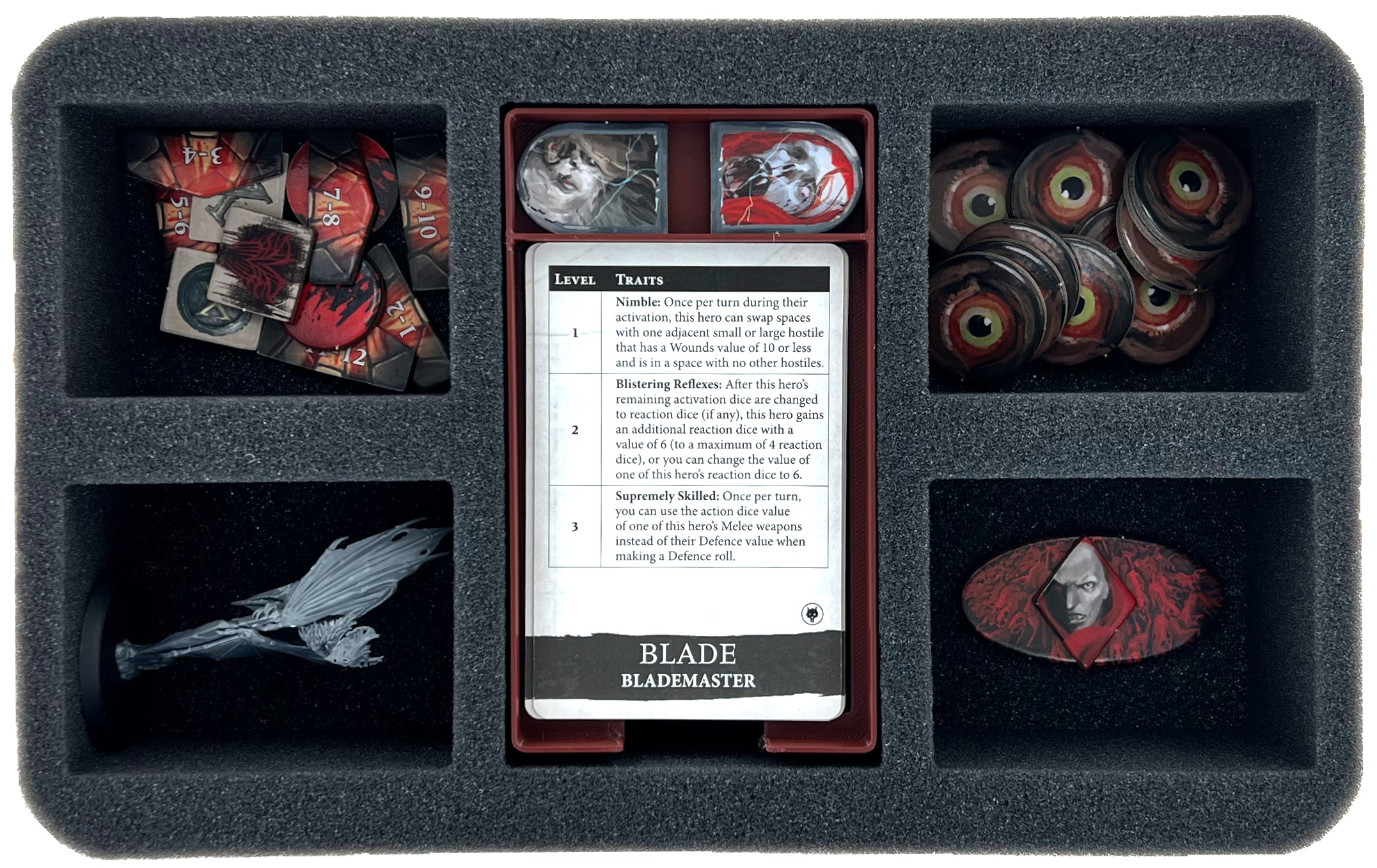 - In addition to the card compartment for storing the playing cards, the insert has a token compartment and an overlay to accommodate the larger "elite class trait cards."
