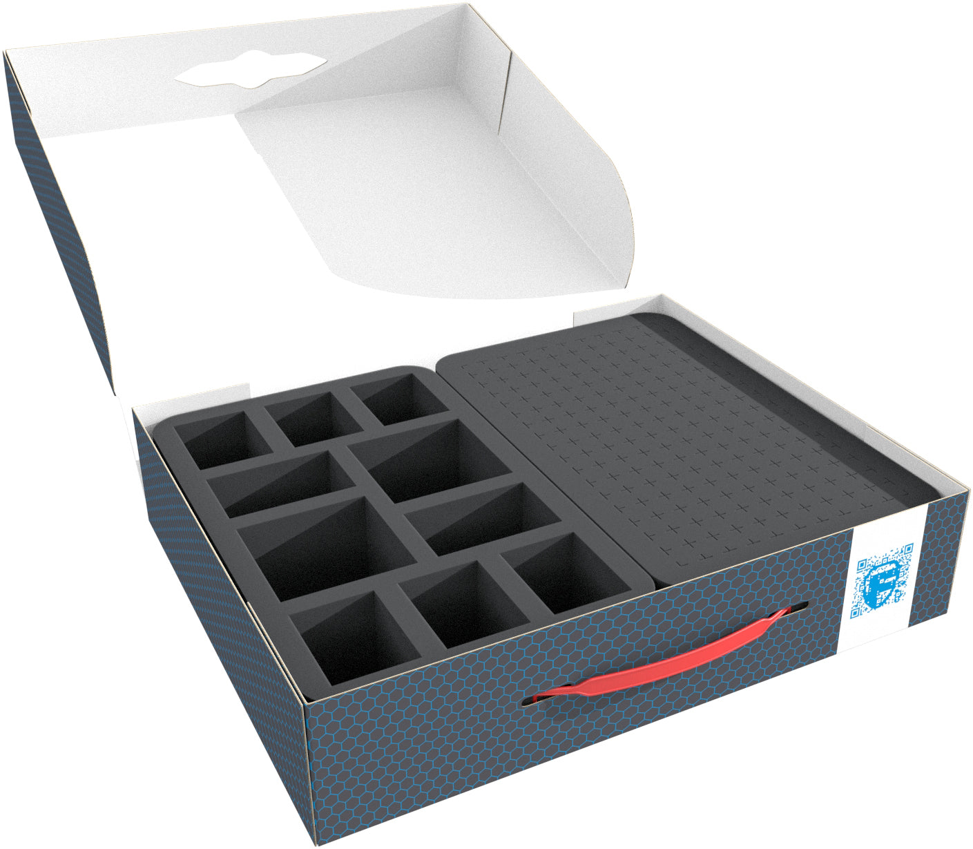 The best way to get rid of Xenos scum are big guns. And what helps even better? Exactly, bigger guns. With this Feldherr Storage Box, you can transport your miniatures and the game material from the "Zombicide: Invader" expansion "Black Ops" comfortably and well protected to the nearest alien-infested space station. Or to the next game night with your frenemies.