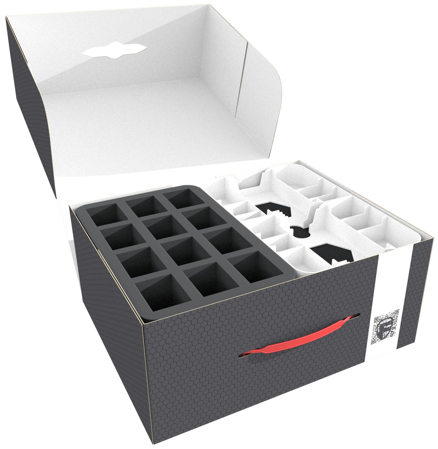 - 1 Full-Size foam tray with 22 compartments for bulky models on 40 mm bases like Super Tactical Droid Kalani, Mandalorians, Mandalorian Super Commandos an miniatures on of similar dimensions (FS050A112)