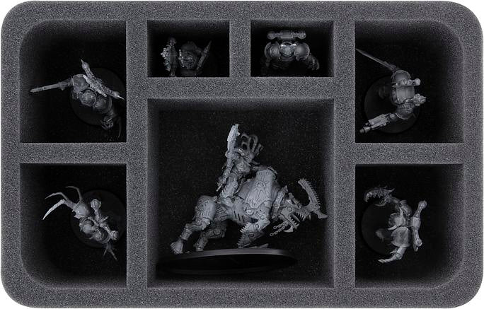- 1 Half-Size foam tray with seven compartments for Chaos General on Moloch de Khorne, Exalted Eightbound, and miniatures of similar dimensions (HS080A022)