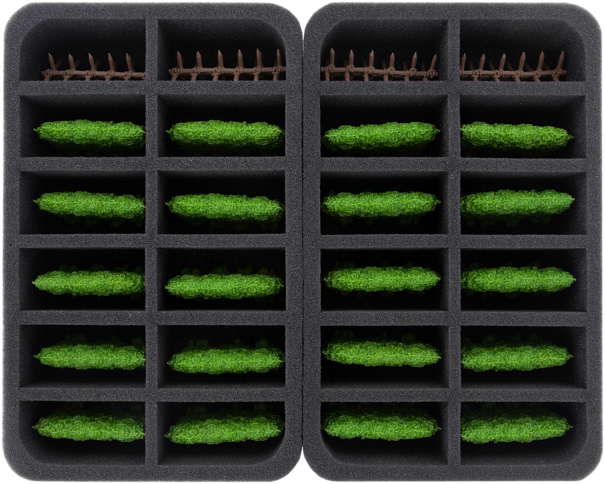 • 2 Half-Size foam tray each with 12 compartments for 20 Hedges und 4 Barriers (HSMECP060BO)