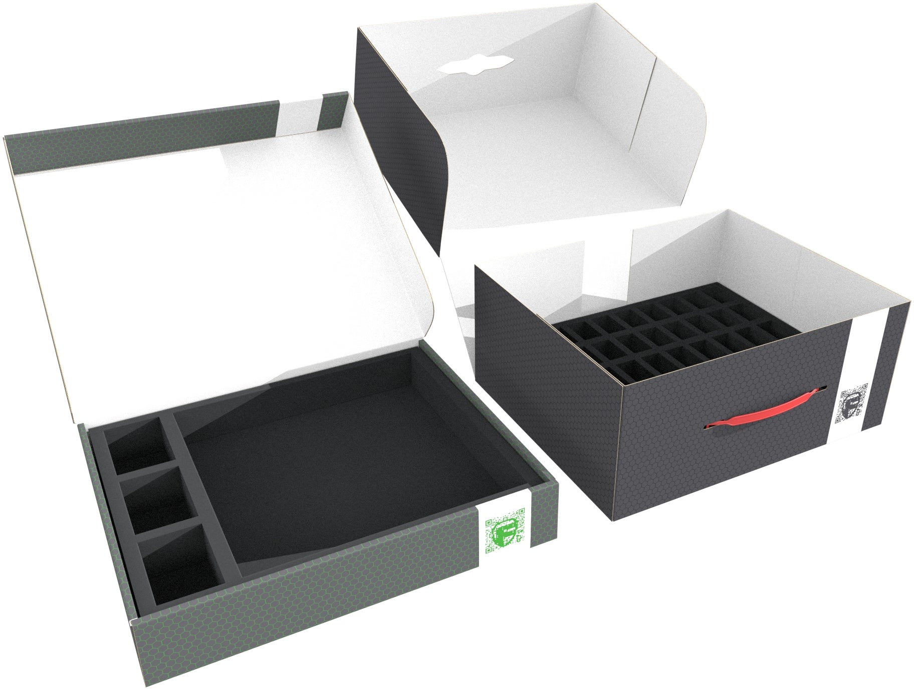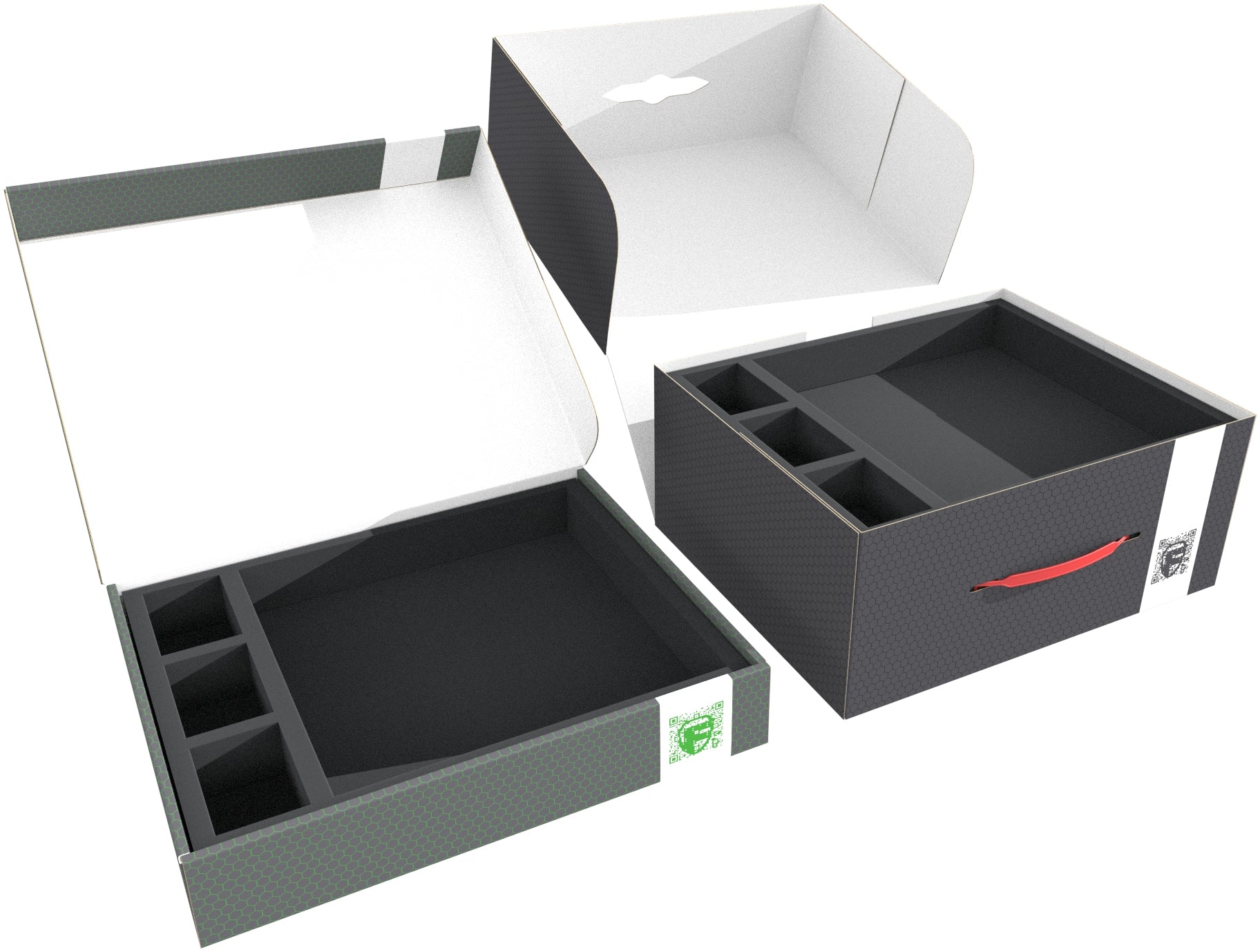 To ensure that your collection is well accommodated, we have provided two Feldherr Storage Boxes (FSLB150 + FSLB055) with custom foam inserts and matching foam toppers. As a result, the miniatures and the entire game material are well-protected and arranged.