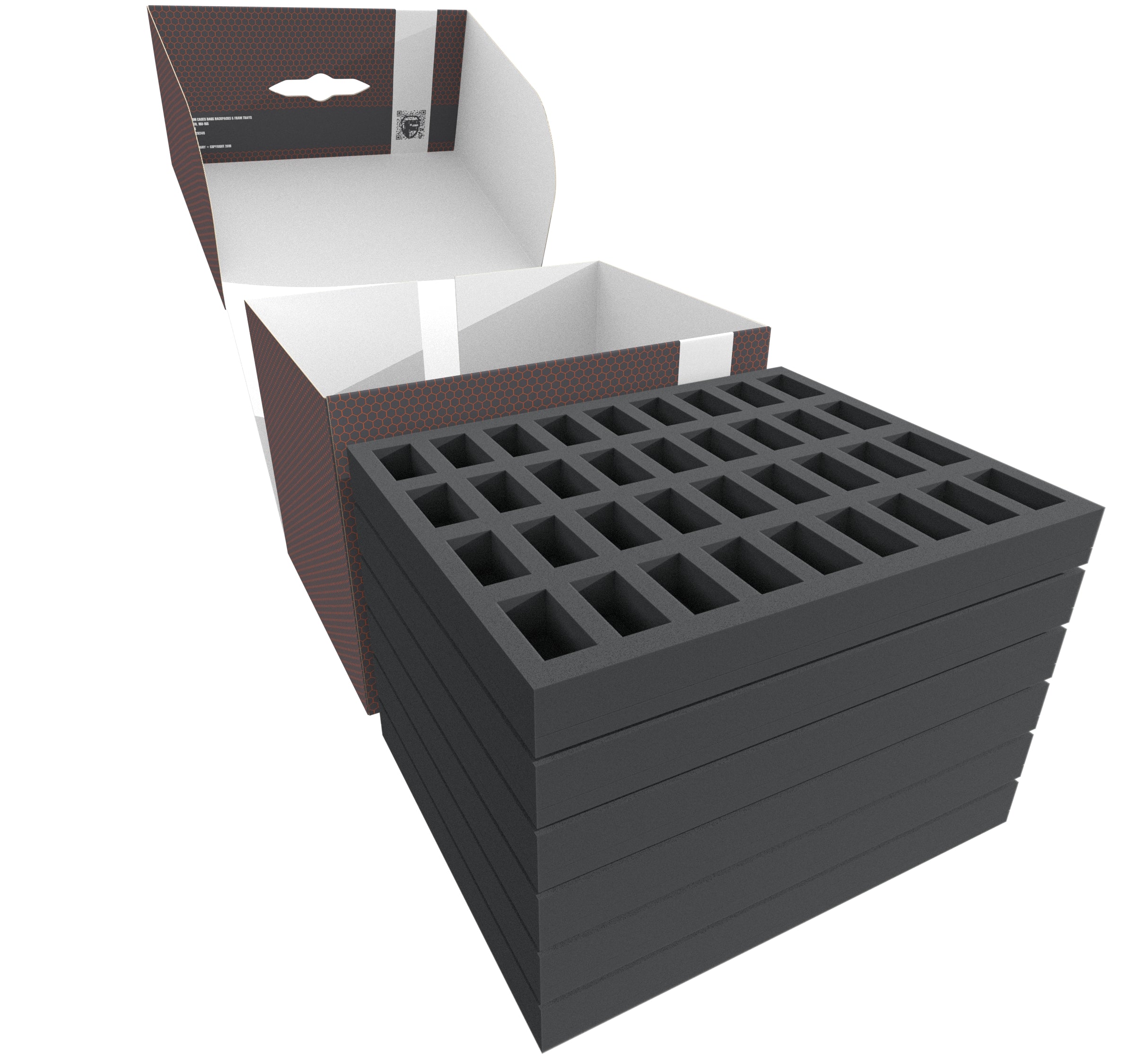 Are you in danger of drowning in your miniature collection? With the Feldherr Storage Box FSLB250 there is finally land in sight again. The Storage Box – jam-packed with foam for 252 models on up to 25 mm bases – allows you to clearly organize your models and provides optimal protection against damage of fragile parts and sensitive surfaces.