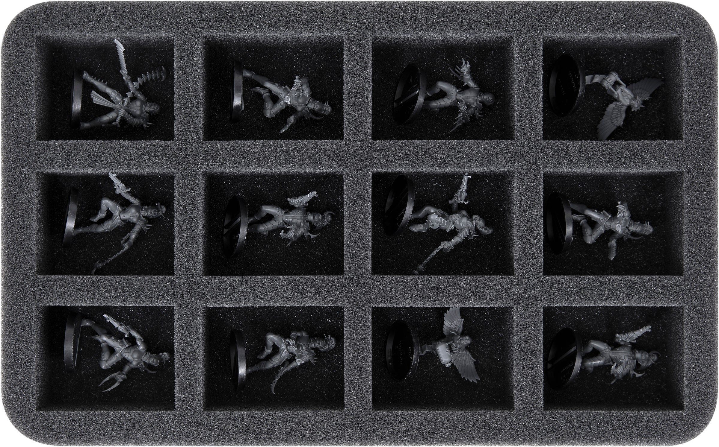 - 1 Half-Size foam tray with 12 compartments for standard infantry like Storm Guardians, Guardian Defenders, Rangers, and models with similar dimensions (HS040A026)