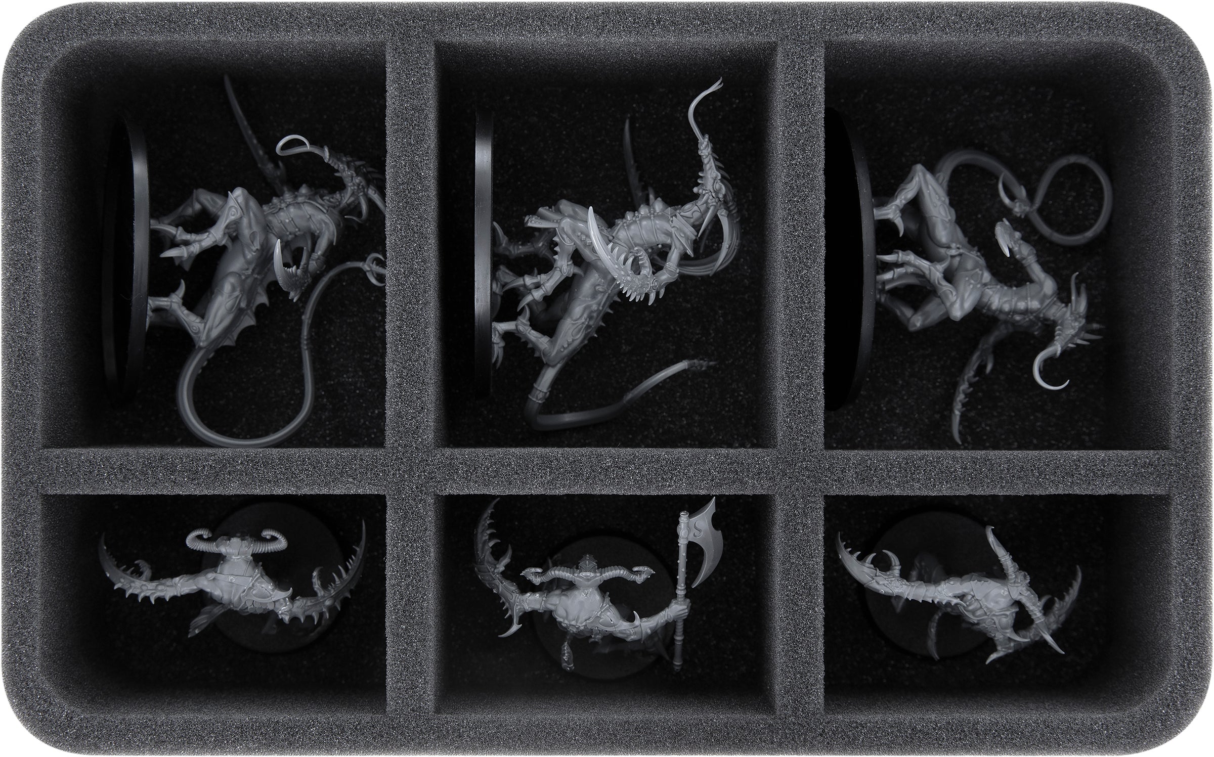Custom-fit compartments of soft foam reliably protect your miniatures from damage and ensure that your painted units arrive safely at the tabletop without scratches.
