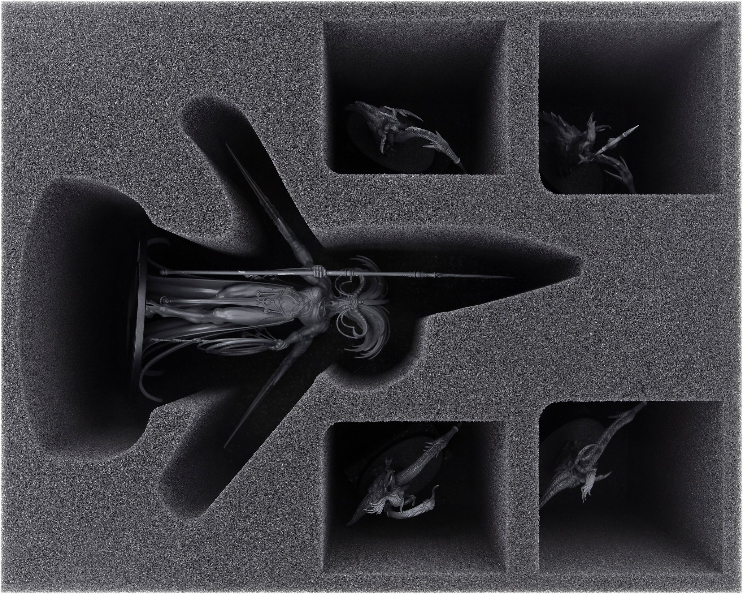 - 1 Full-Size foam tray with 5 compartments for Keeper of Secrets/ Shalaxi Helbane + bulky miniatures like Fiends, Infernal Enrapturess, banner bearer and musicians of the Daemonettes (FSMEOG135BO)