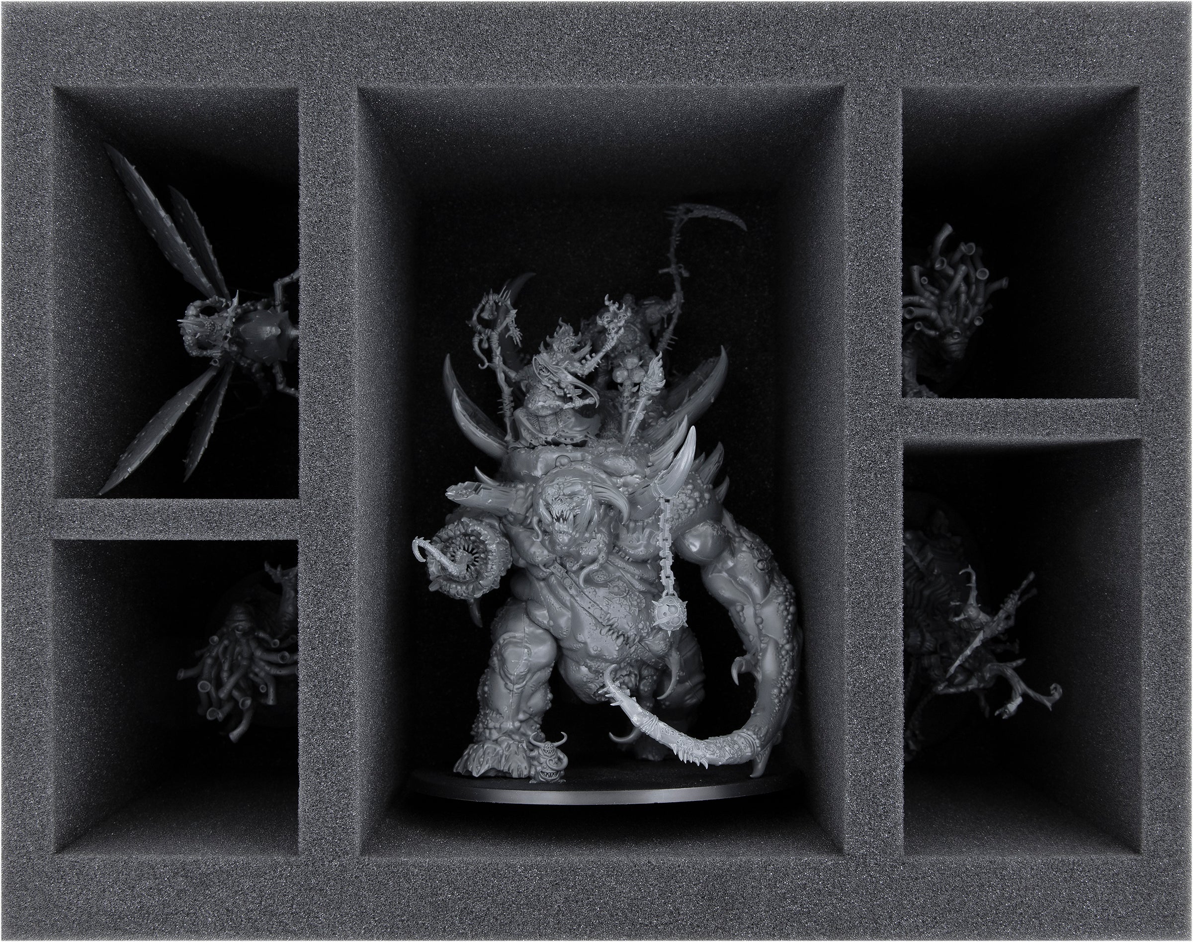 - 1 Full-Size foam tray with five compartments for The Glottkin, Harbinger of Decay, Epidemius, Beast of Nurgle, or models of similar dimensions (FS140A005)