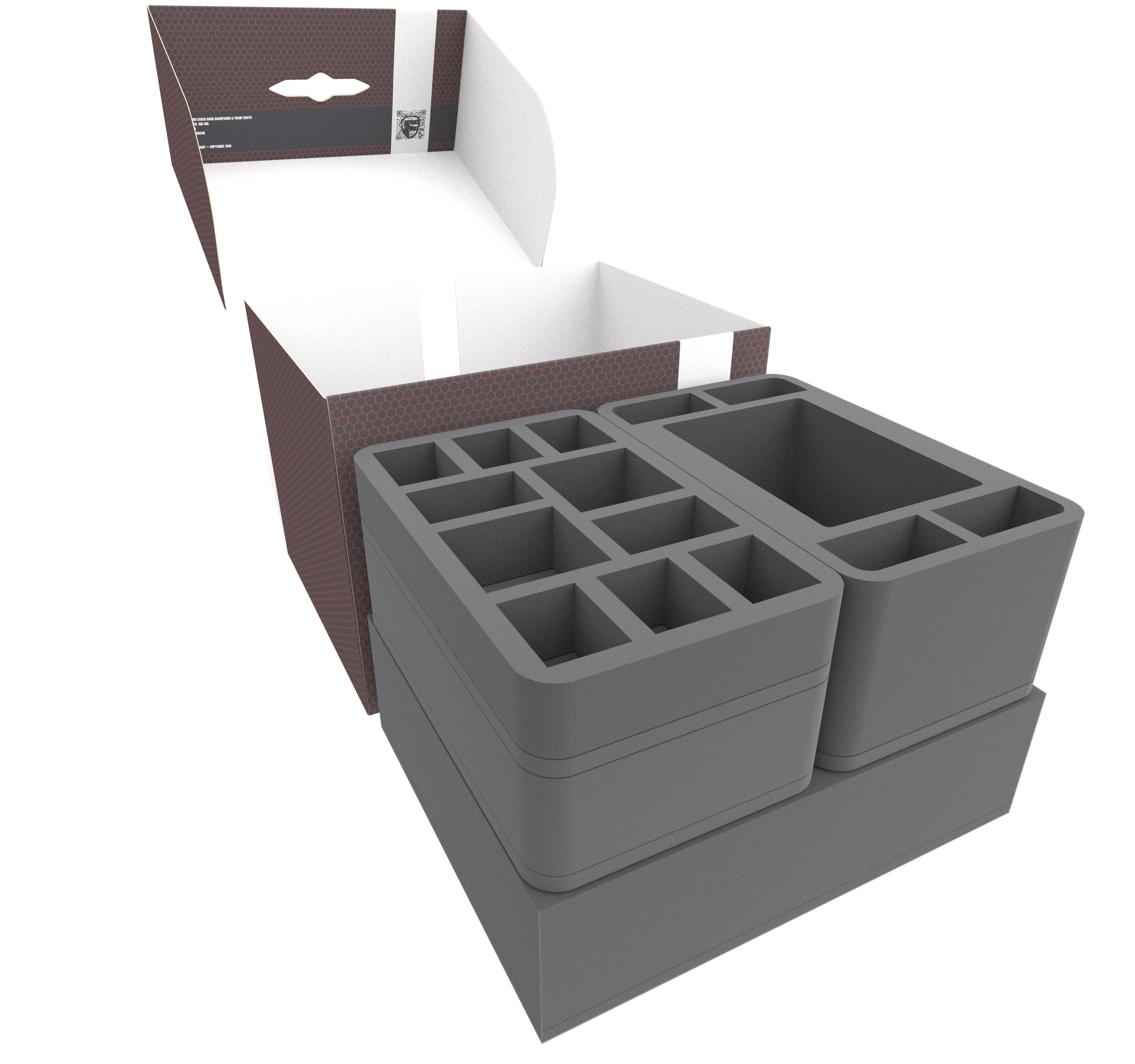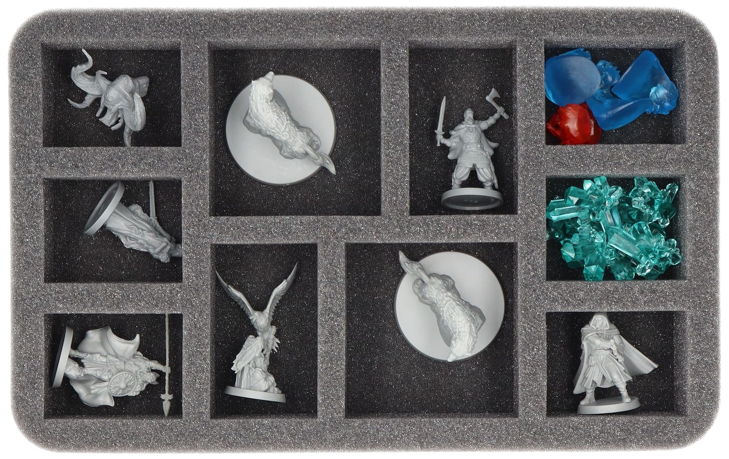 One Full-Size and three Half-Size foam trays provide reliable protection for your miniatures - each miniature gets its own custom-fit cut compartment.