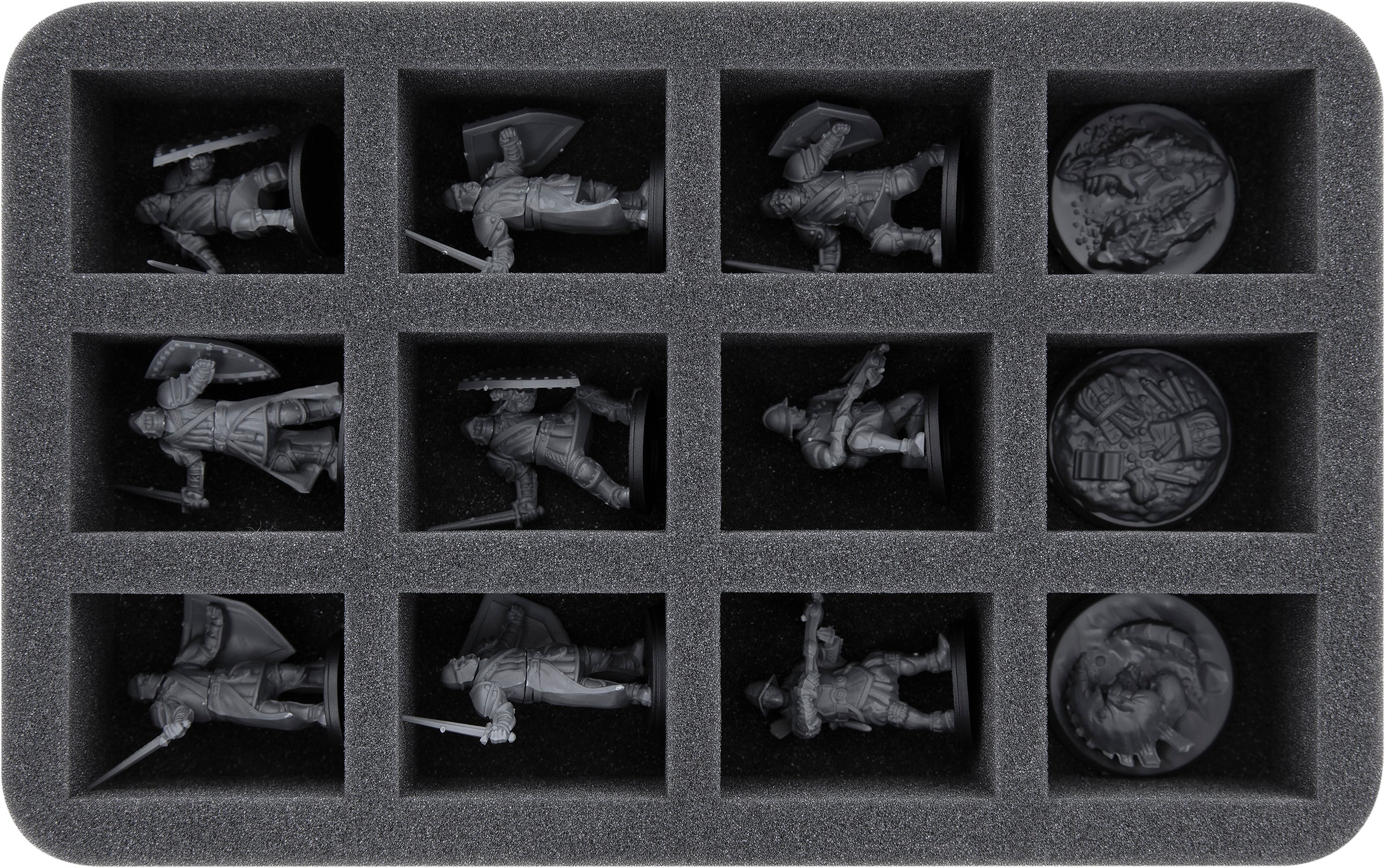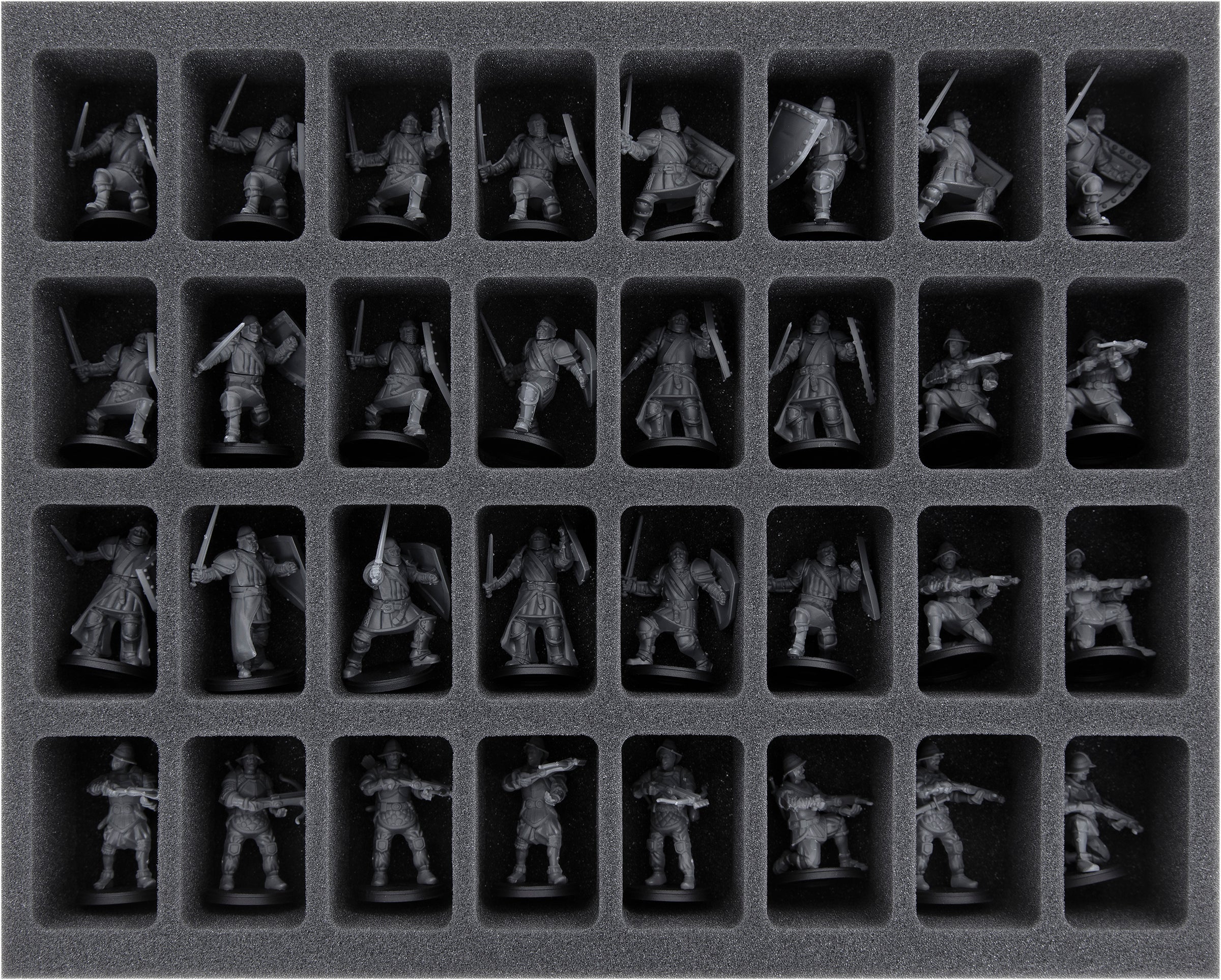 - 1 Half-Size foam tray for 4 Men-at-Arms + 8 additional miniatures (HS050I012BO)