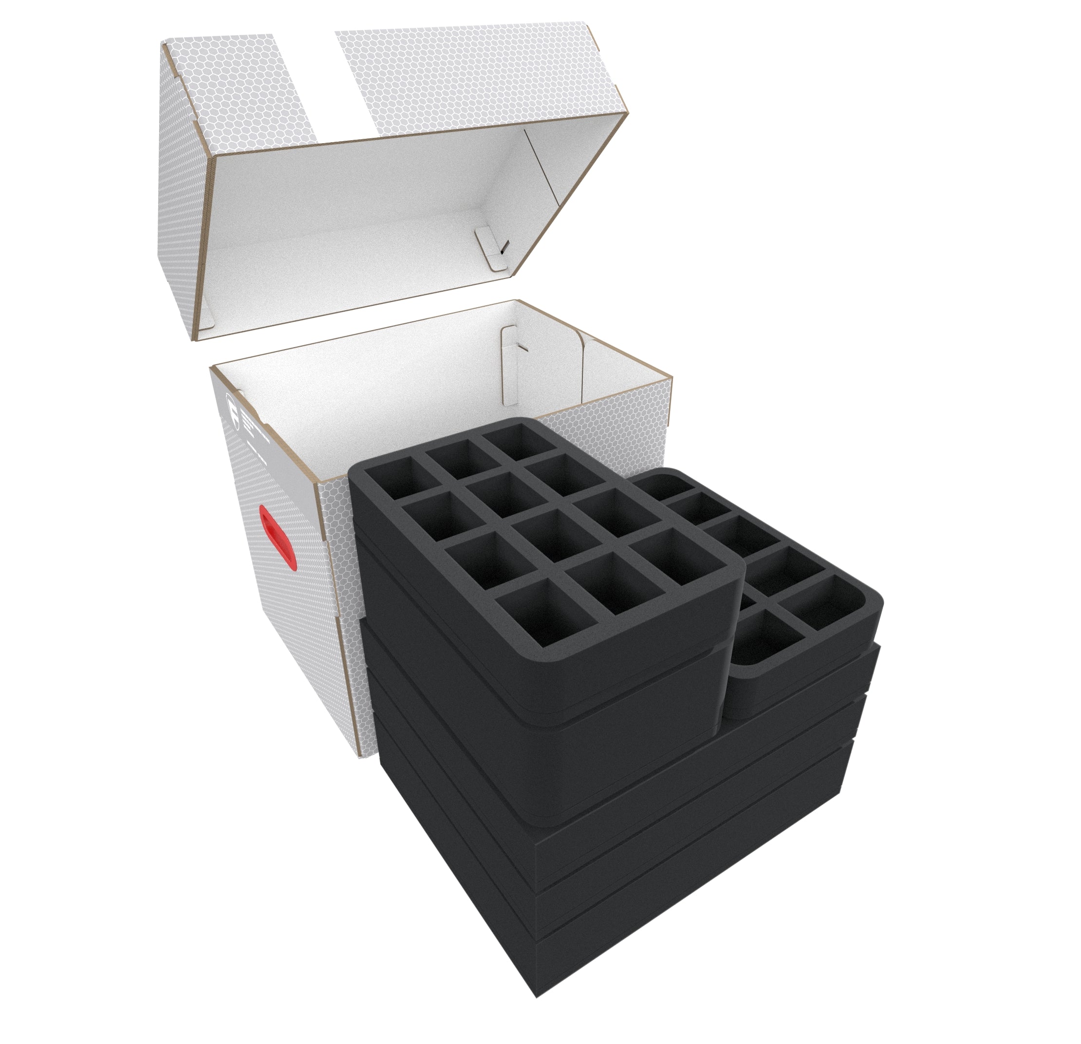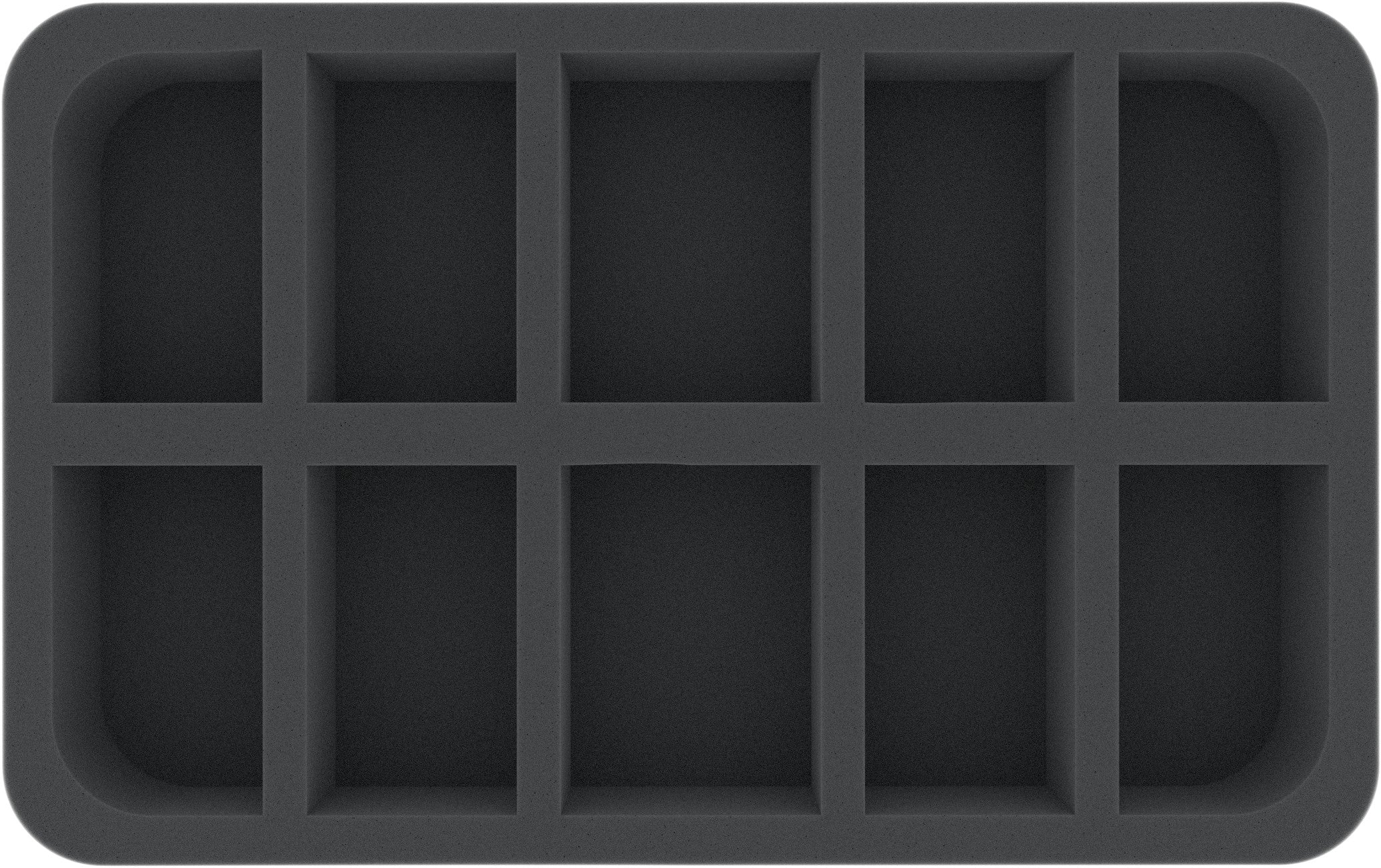 - 1 Half-Size foam tray with 10 compartments for protruding miniatures (HSBE040BO)