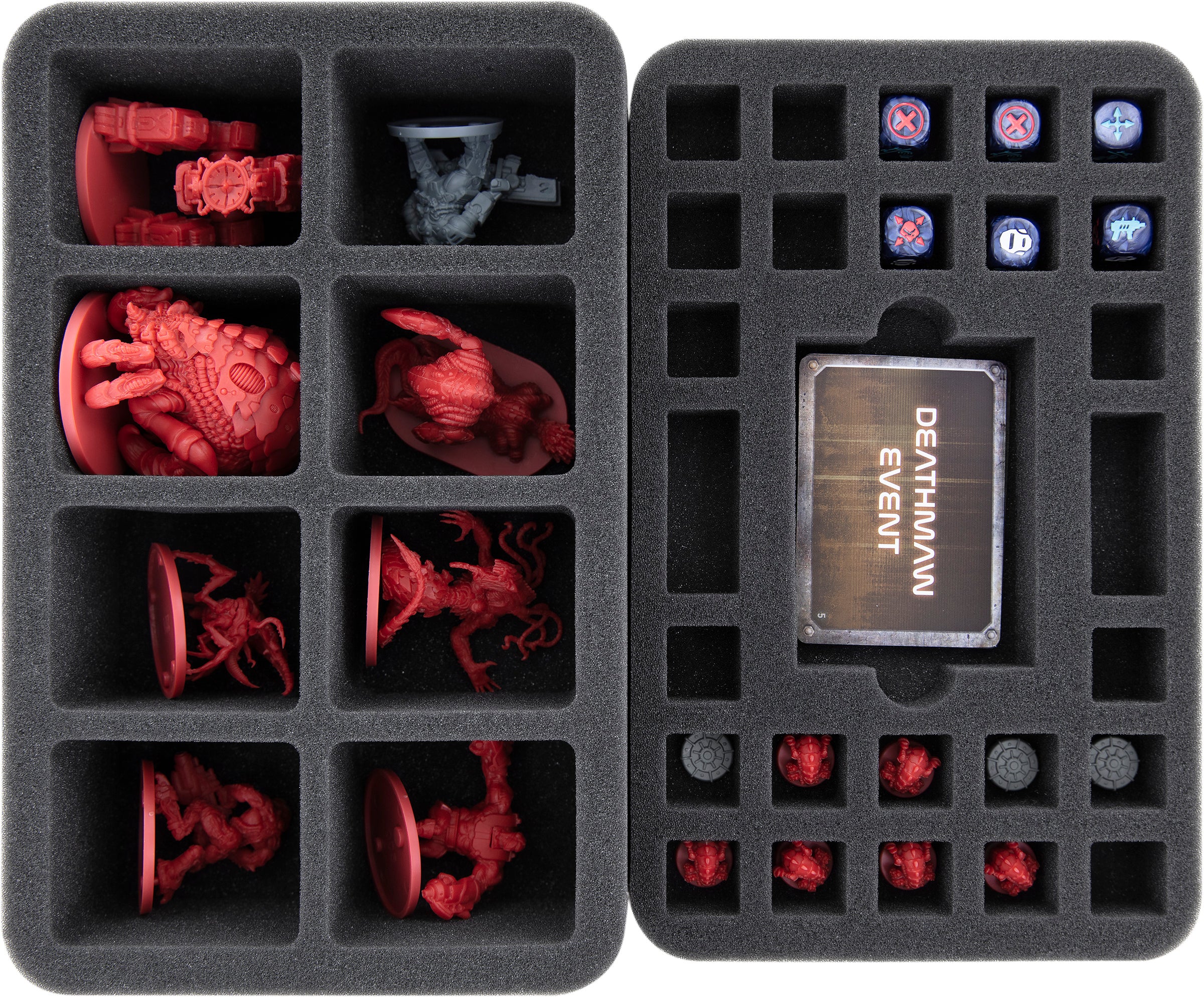 Whether glorious hero, like Dante, hateful alien scum, like the Biters, or gigantic bosses, like the meter-long Deathmaw - for each model there is a separate, custom-fit compartment. In the case of Deathmaw even 9.