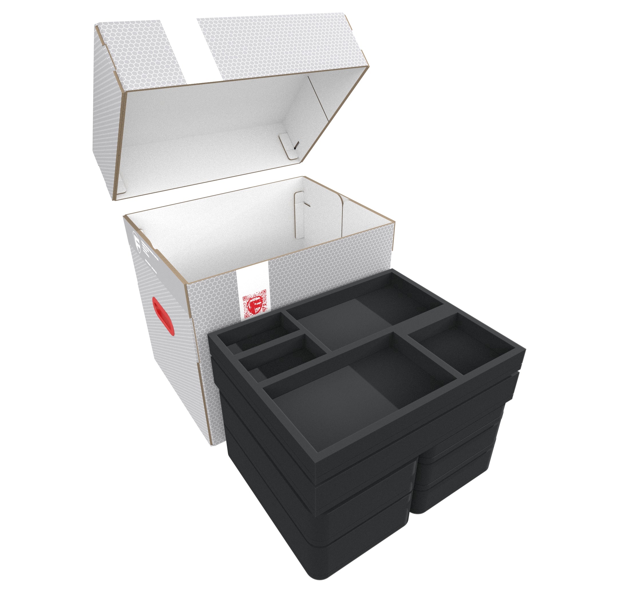 - 1 Half-Size foam tray+ 3D insert for game material and miniatures (HSMEQO50BO + 60432)