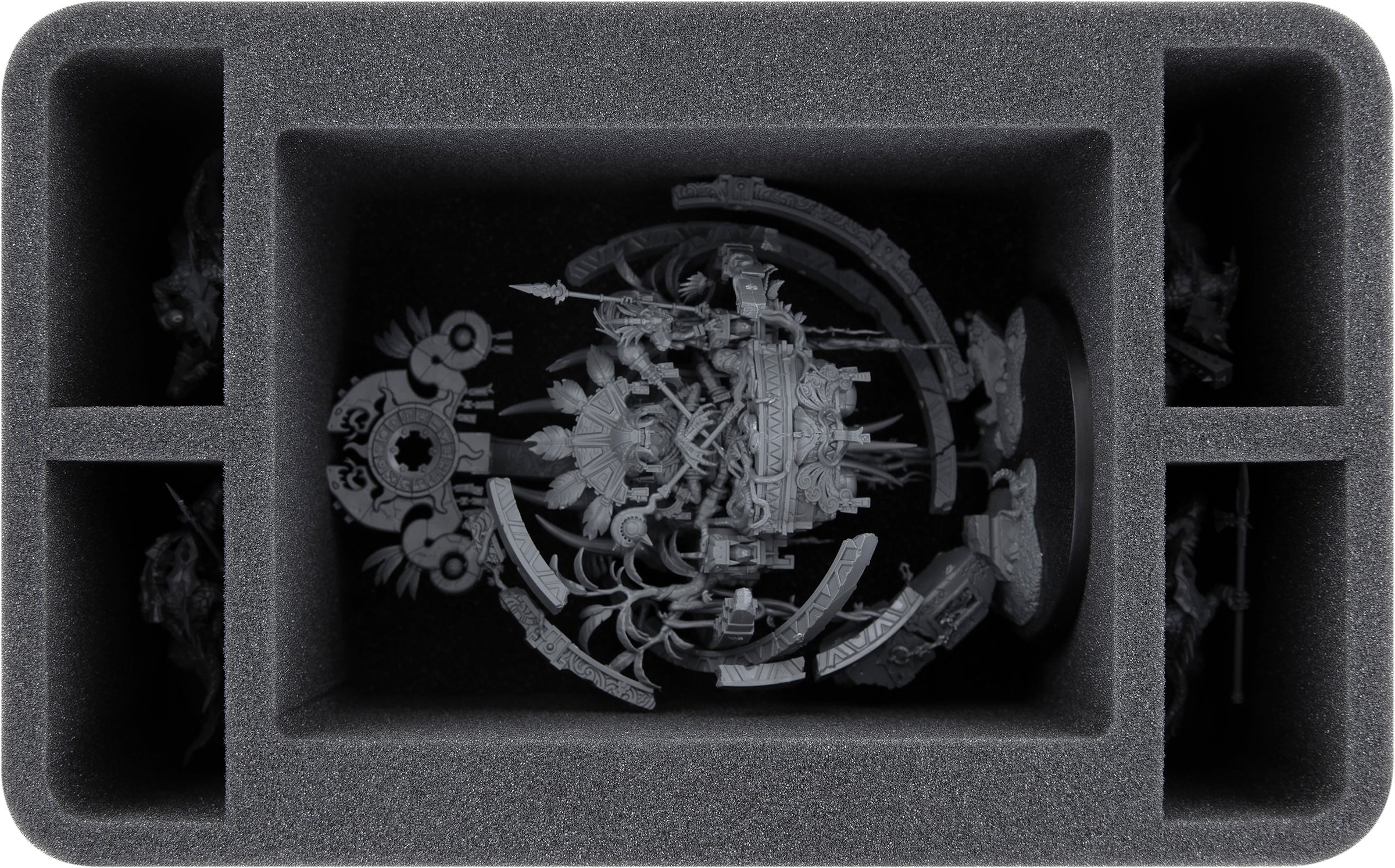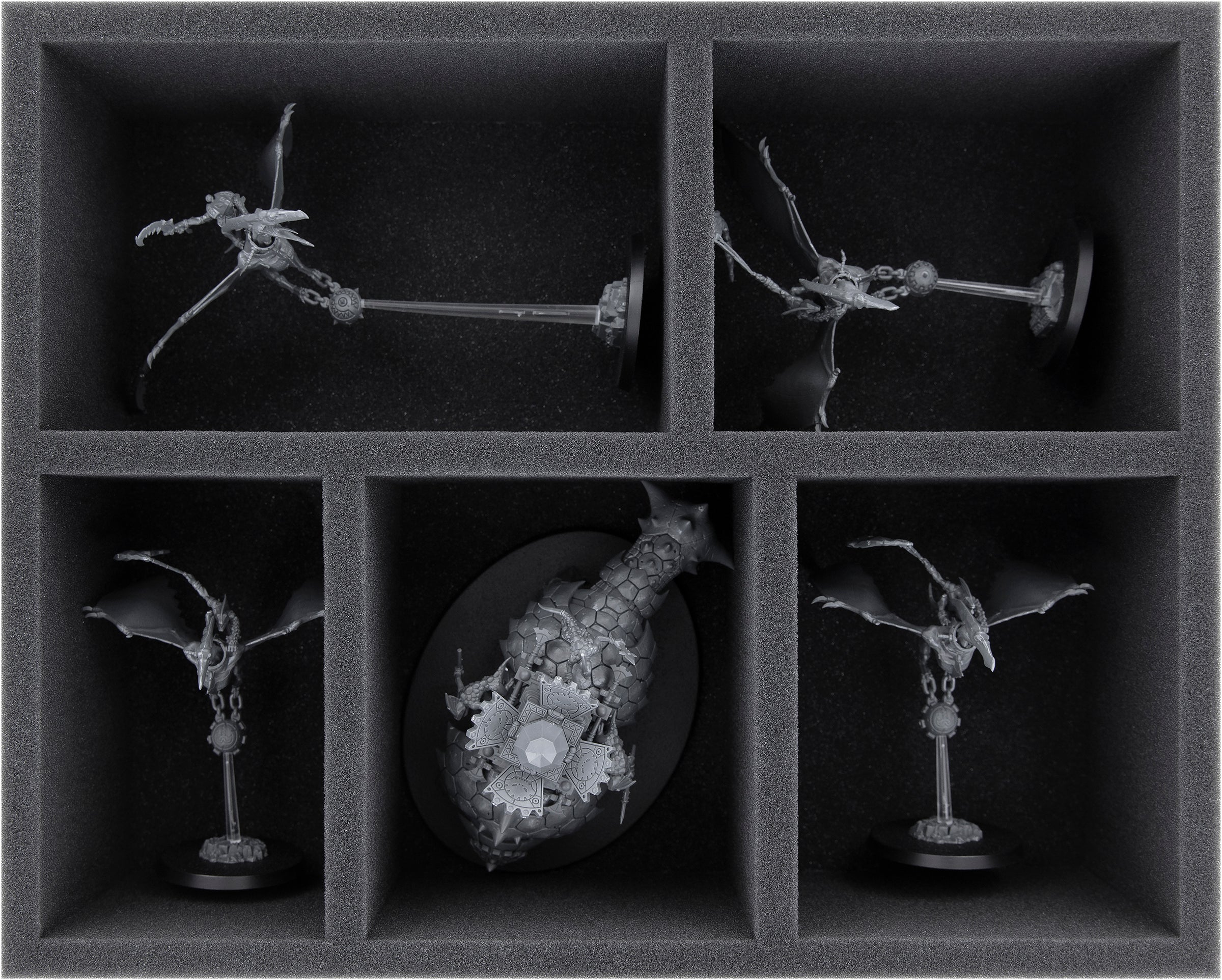 - 1 Half-Size foam tray with 5 compartments for, e.g. Lord Kroak, Saurus Knights (HSMEVE105BO)