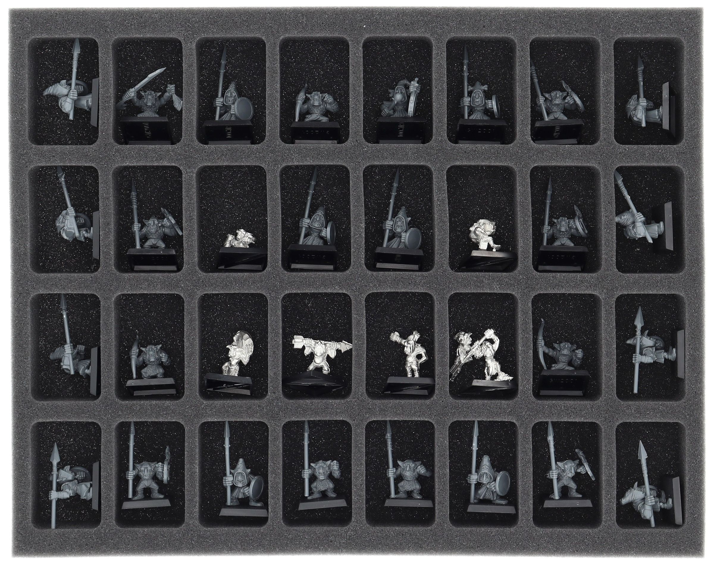 - 1 x FS040A042 - Full-Size foam tray with 32 compartments for e.g. Orc Boyz Mob, Night Goblin Mob, Goblin Mob, Doom Diver Catapult, Goblin Bolt Throwa
