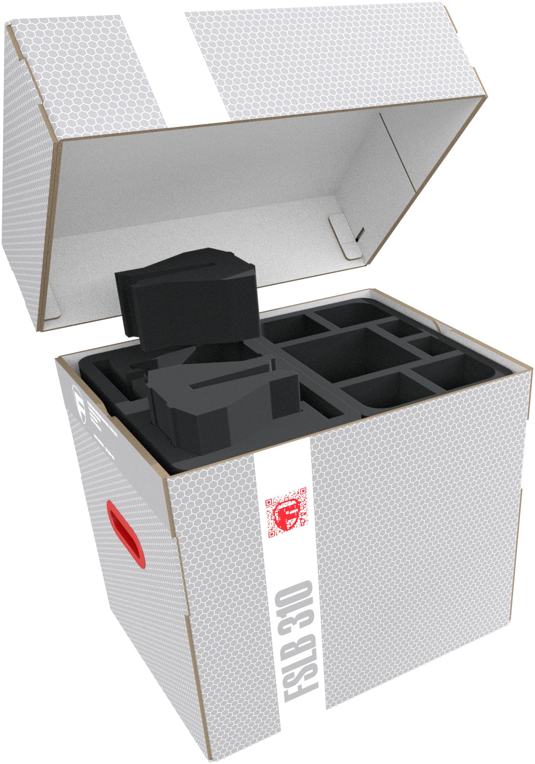 The Storage Box FSLB310 is made of coated, double-walled cardboard and therefore both very light and very stable. The attachable lid reliably protects your models from dust and other external influences. With the two plastic-reinforced carrying handles on the sides, you can transport the box very comfortably.