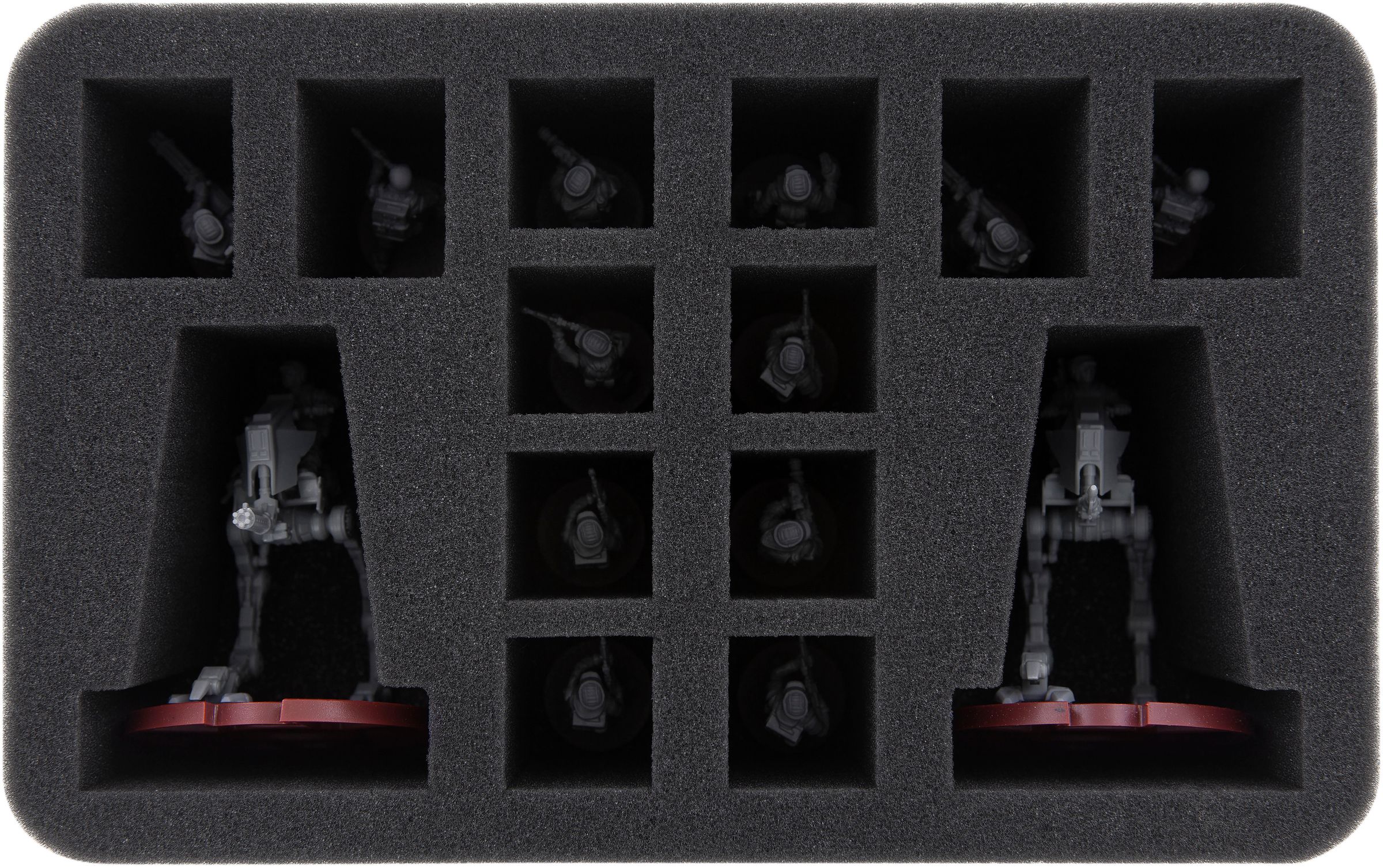 HSMEBZ080BO: Foam tray for two AT-RT and twelve Rebels. The precisely-cut AT-RT compartments enable safe transport of the vehicles. Additional twelve compartments are available for eight Standard Rebel troopers and four Rebels with heavy armament.