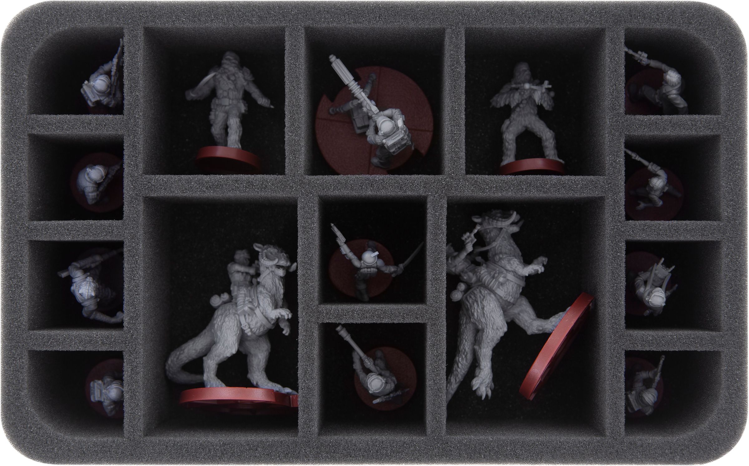 HSMEDO065BO: The insert has 15 compartments. The two large, custom compartments will hold two Tauntaun Riders. The three medium-sized compartments can be filled with Mark II Medium Blaster Trooper miniatures. Up to ten Rebel Veterans find space in the remaining compartments