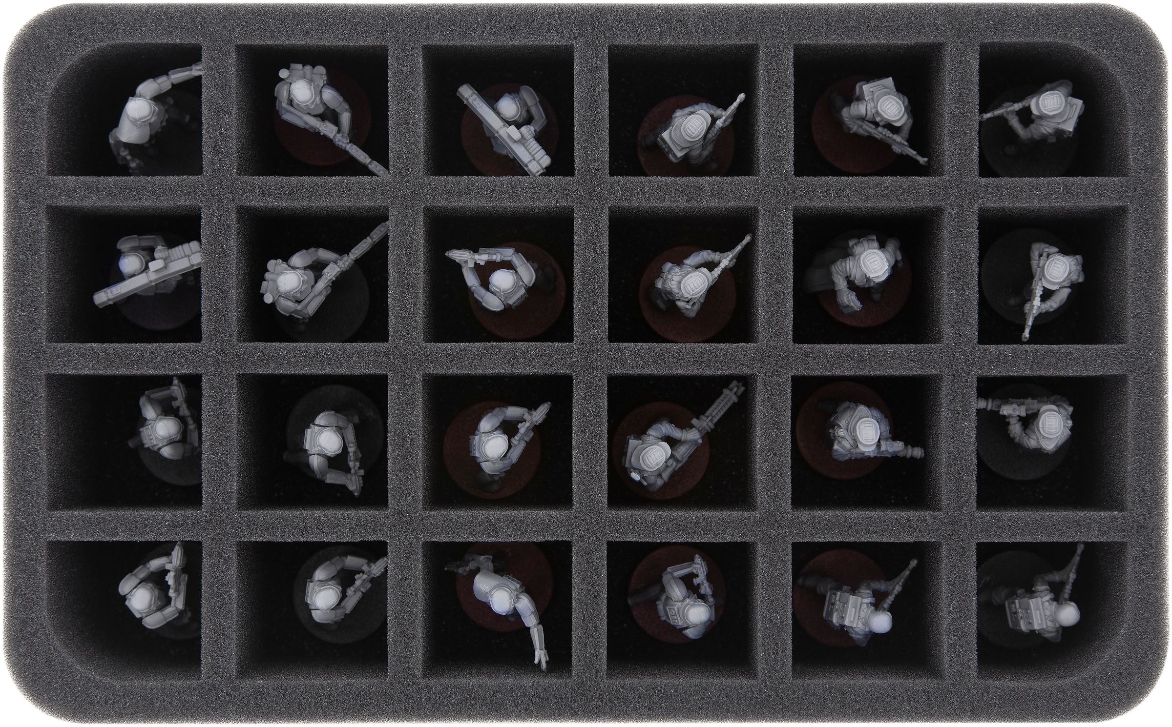 - 1 foam tray with 24 compartments for standard infantry miniatures (HSCS060BO)