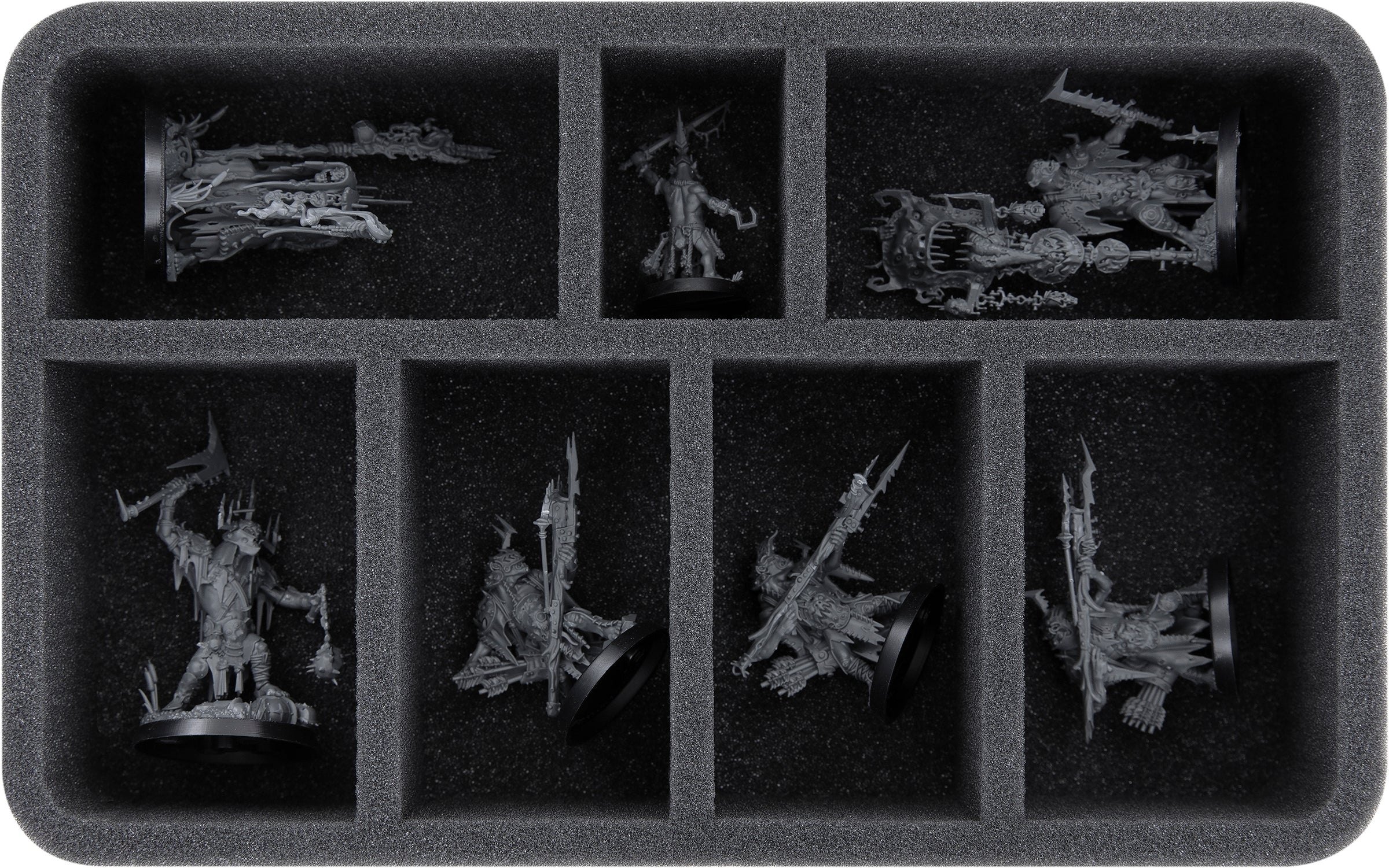 - 1 Half-Size foam tray with 7 compartments for Murknob with Belcha-banna, Swampcalla Shaman, Man-skewer Boltboyz, Killaboss (HSMEYH055BO)