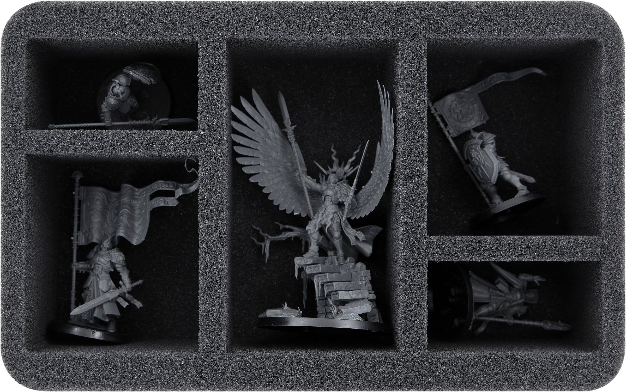 - 1 Half-Size foam tray with 5 compartments for Yndrasta the Celestial Spear, Lord-Imperatant with Gryph-hound, Knight-Vexillor with Banner of Apotheosis, Knight-Arcanum (HSMEYG075BO)