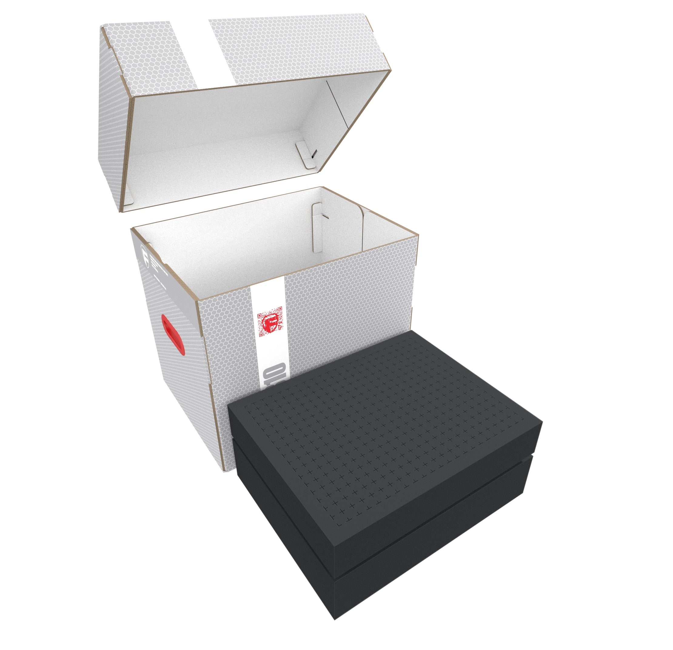 A matching foam topper completes the set. The topper is placed on the uppermost tray and makes sure nothing can fall out or bump against the lid of the box.