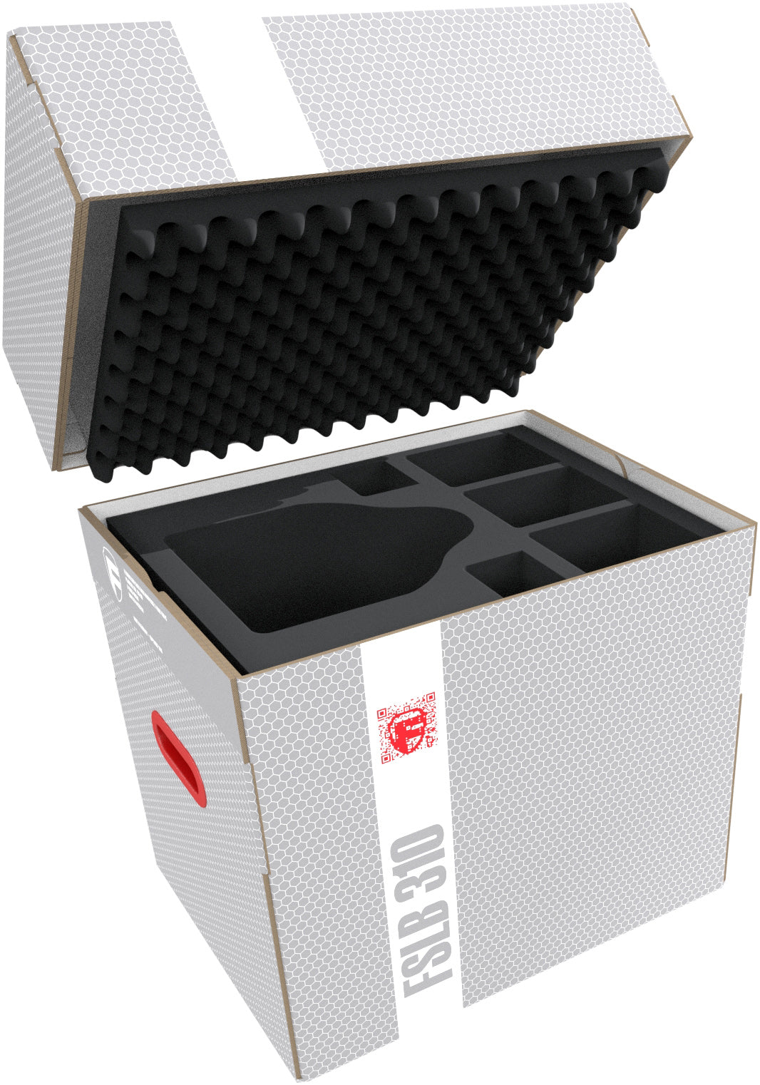 Of course, the trays fit exactly into the stable Storage Box FSLB310. The box is made of coated, double-walled cardboard and therefore both very light and very stable. The attachable lid reliably protects your models from dust and other external influences. With the two plastic-reinforced carrying handles on the sides, you can transport the box very comfortably.