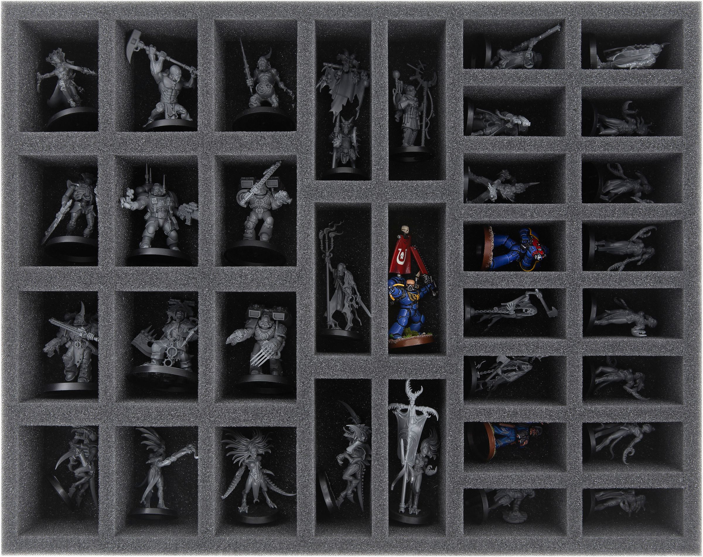 - 1 foam tray with 34 compartments for standard miniatures (FSBR050BO)