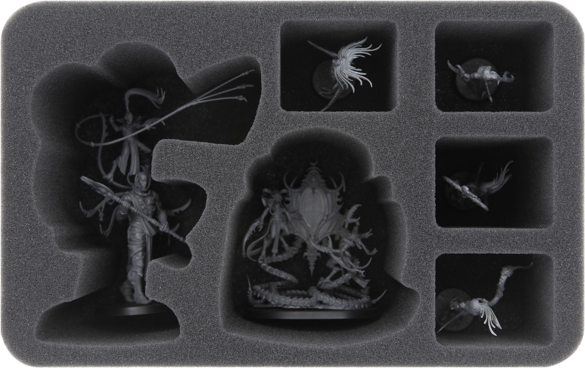 - 1 foam tray with 6 compartments for 1 Exalted Seeker Chariot and five further miniatures (FSMEOL100BO)