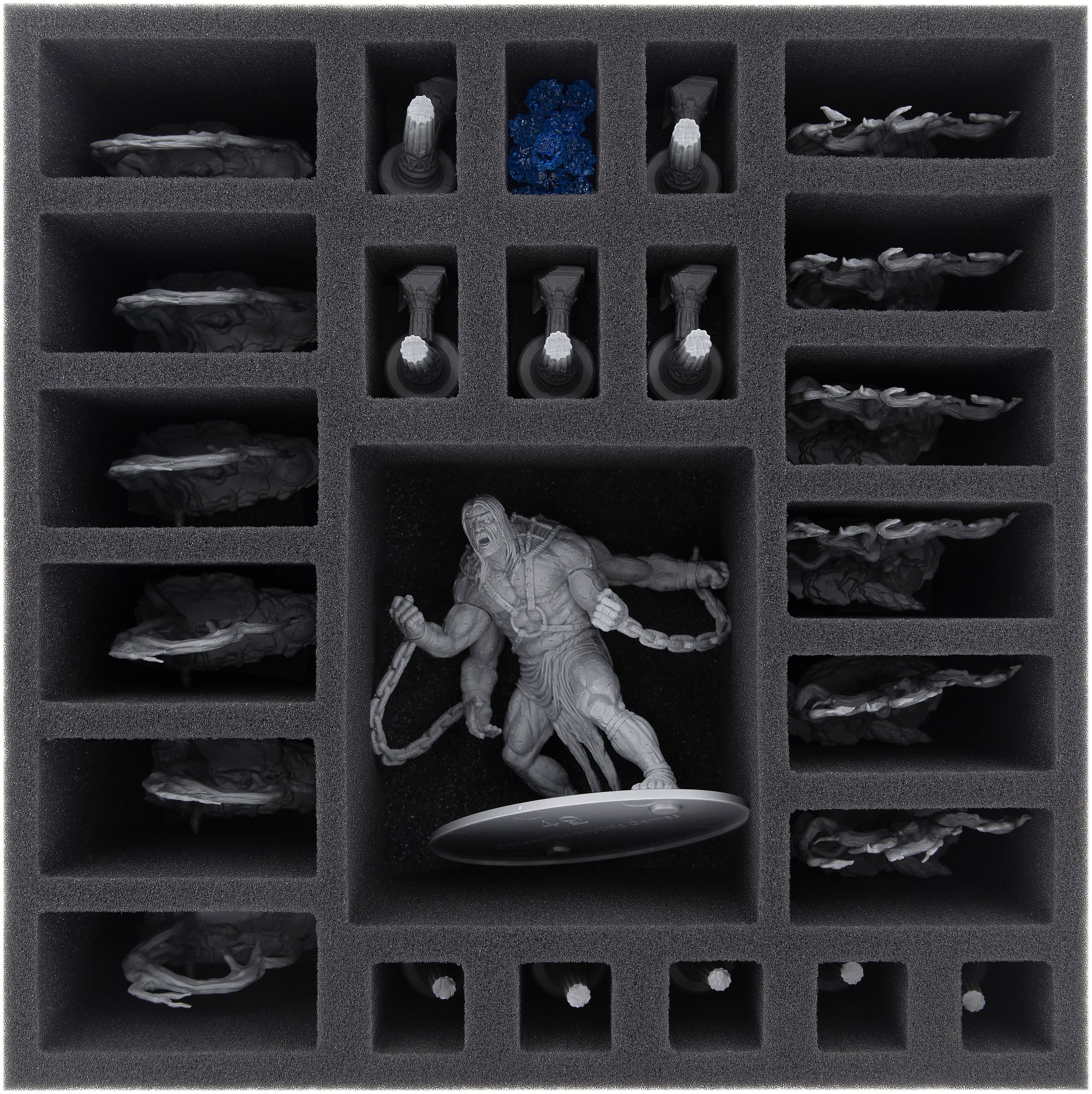 - 1 foam tray for Mythic Battles: Pantheon with 24 compartments of different sizes, with a large compartment for Atlas, and smaller compartments for terrain sets.