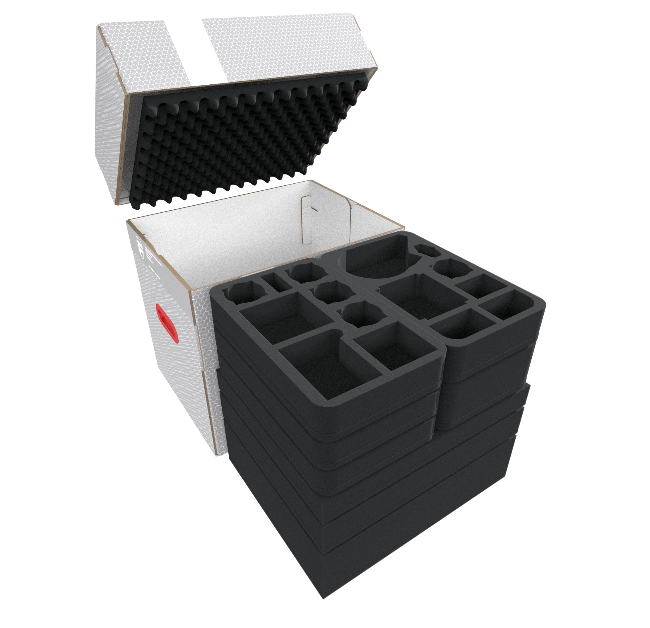 The large Feldherr cardboard storage box for storing and transporting your ships. The box is filled with a total of seven tailor-made foam inserts for your Rebel fleet. In addition, the package contains two inserts for tokens, bases and other accessories. This one is compatible with the 2nd Edition.