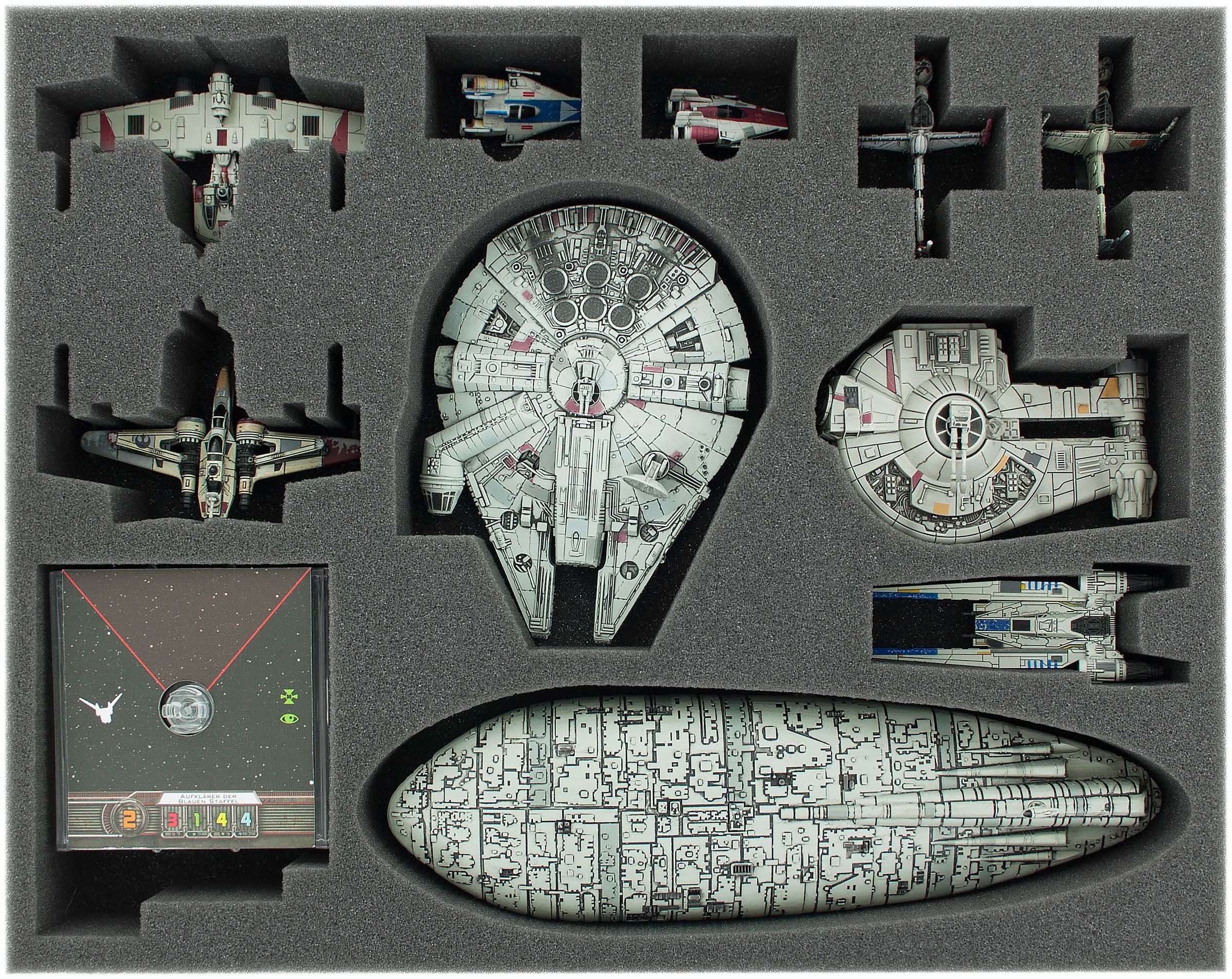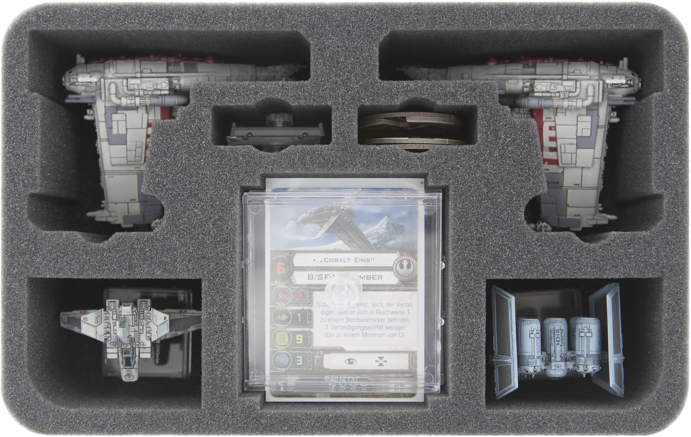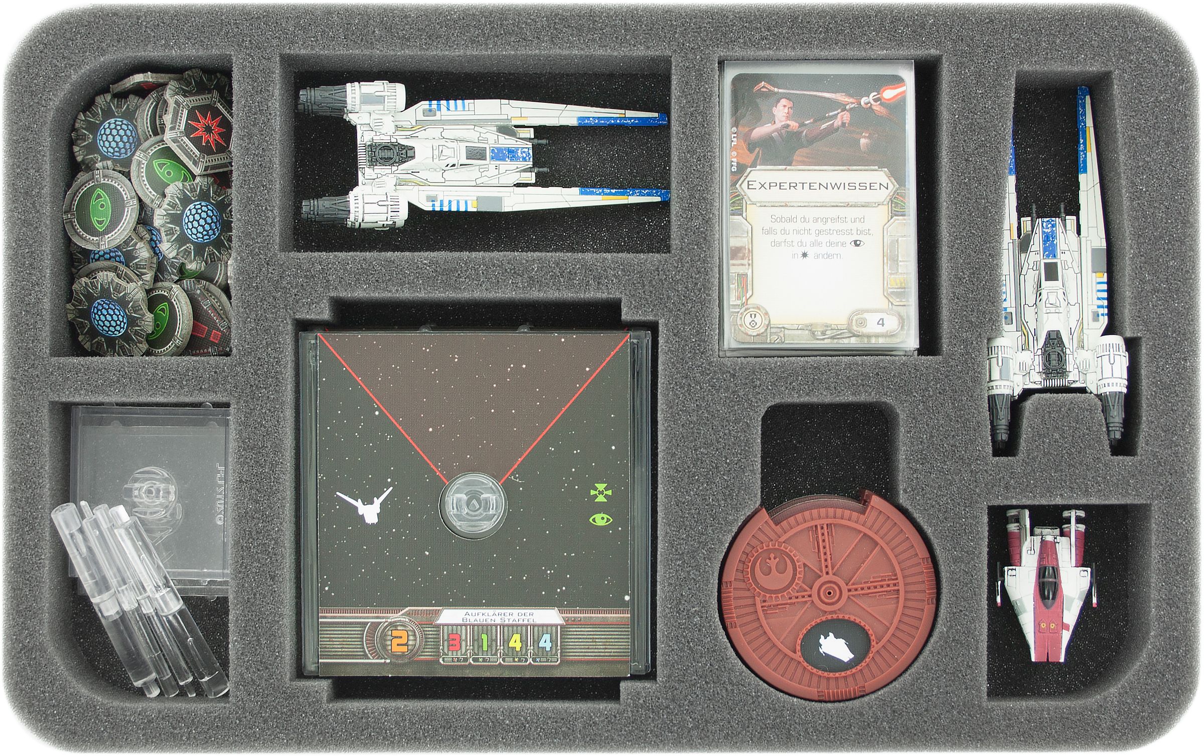 A large Full-Size foam tray lets you decide which starfighters also support your fleet. It is divided into 26 compartments, eg. for: