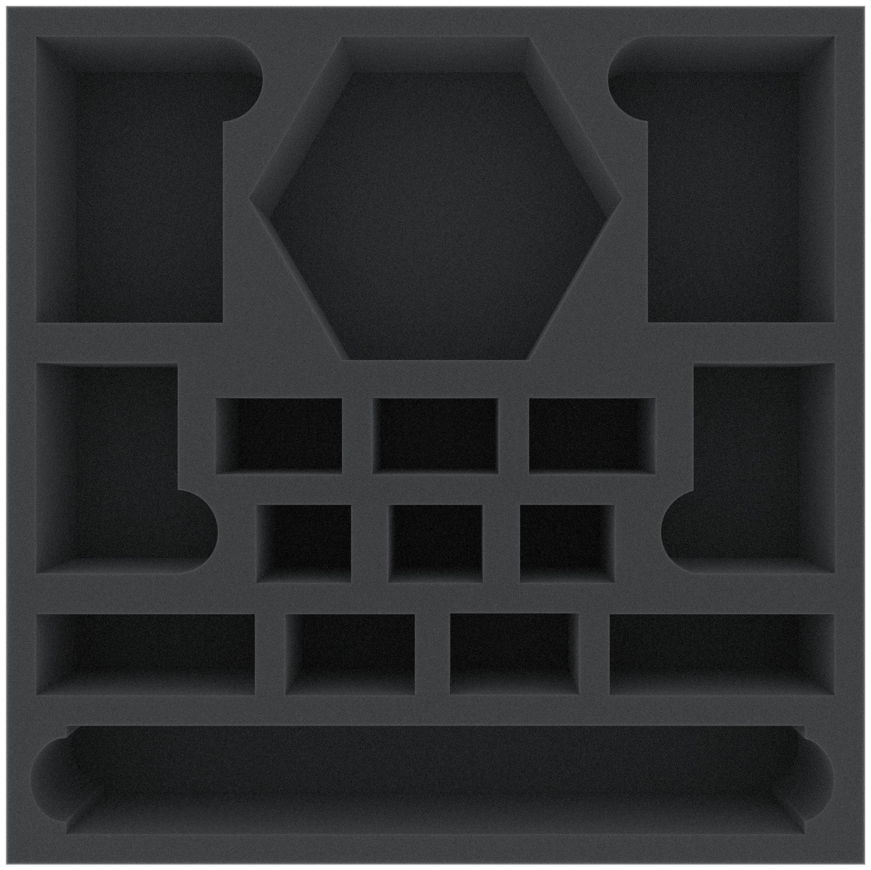 The Feldherr foam tray has 16 compartments which will hold board game accessories, figures, dice, American Mini cards, American Board Game cards. Ideal for Star Wars: Imperial Assault, Descent, or similar games. The fine-pored foam reliably protects your figures – fragile parts remain intact, the color of painted models remains unharmed.