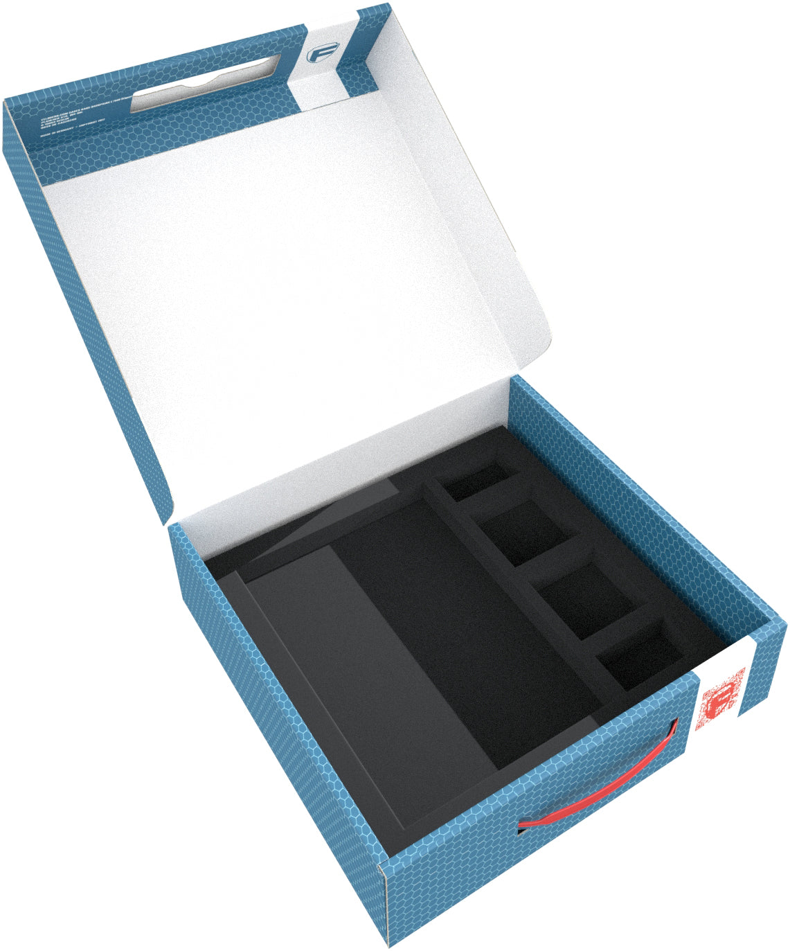 Are you tired of sorting through your figures, tiles, tokens, and dice before each game, only to find that you're missing a marker or a miniature is missing its head? Before you lose your head, this Feldherr Storage Box with foam tray will help you keep your game components neat and safe.