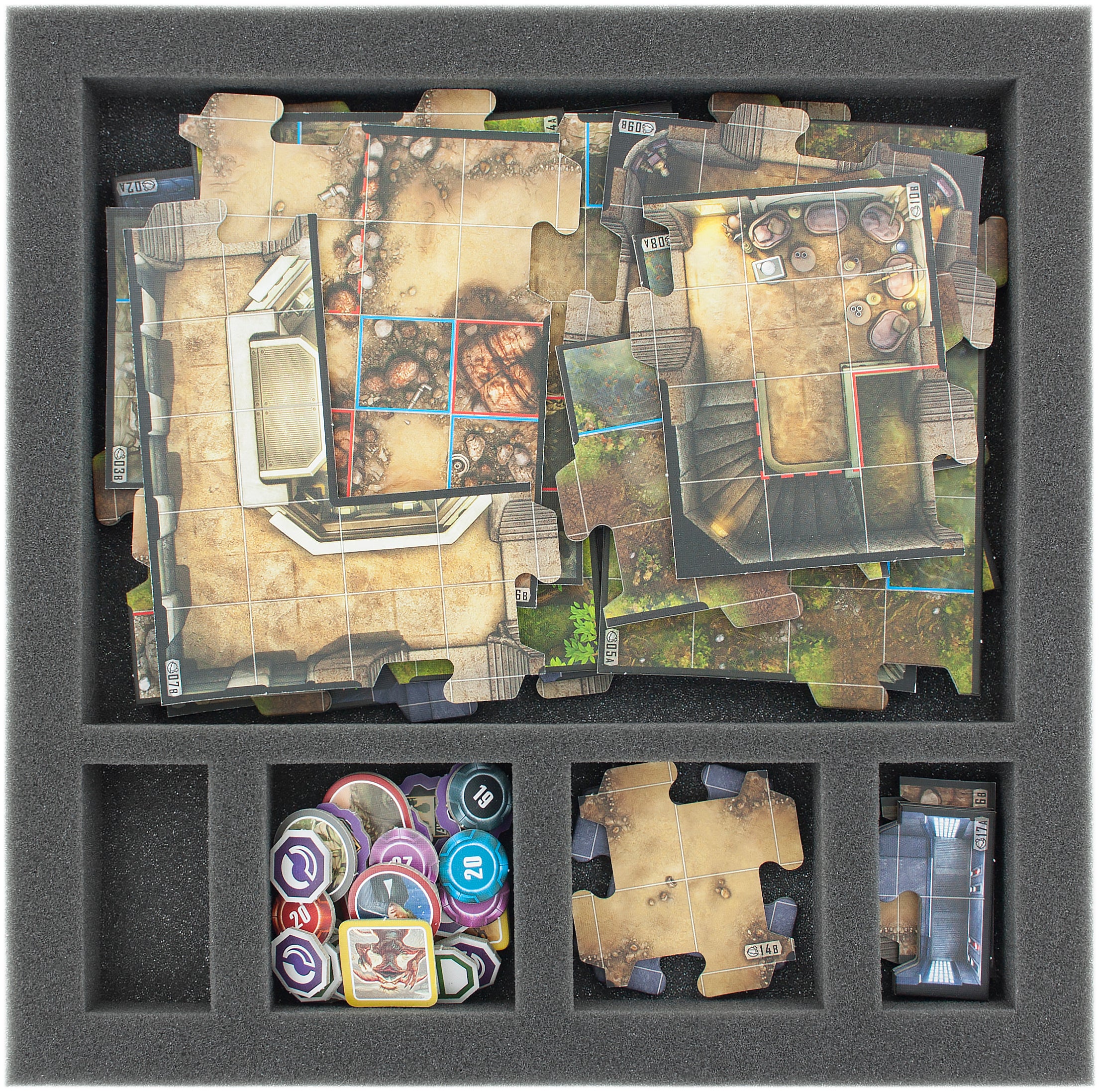 The Feldherr foam trays have 10 compartments which will hold board game accessories and tiles. Ideal for Star Wars: Imperial Assault, Descent or similar games. The fine-pored foam reliably protects your figures – fragile parts remain intact, the color of painted models remains unharmed.