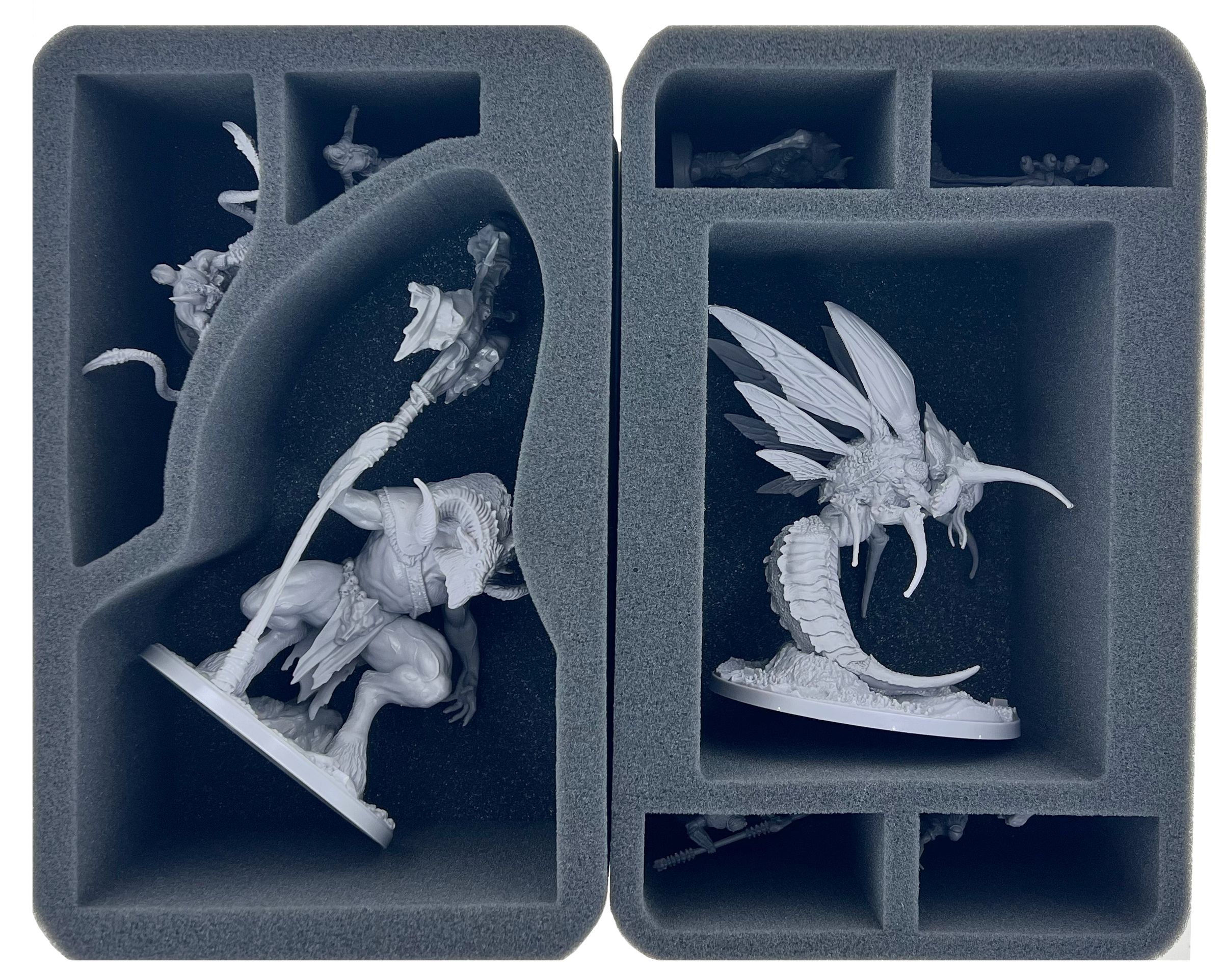 The large foam toppers complete the set. They ensure that your miniatures are well protected, and nothing bumps against the lid of the Storage Boxes.