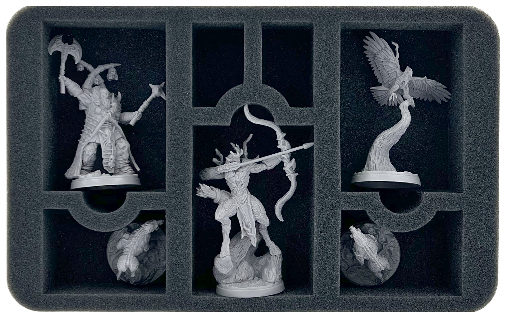 Whether it is a small, medium, or large figure, each miniature from the 20 boxes gets a suitable compartment. Because of the custom-fit cut, the figures do not slip around. They remain in place even when transported through the deepest woods.
