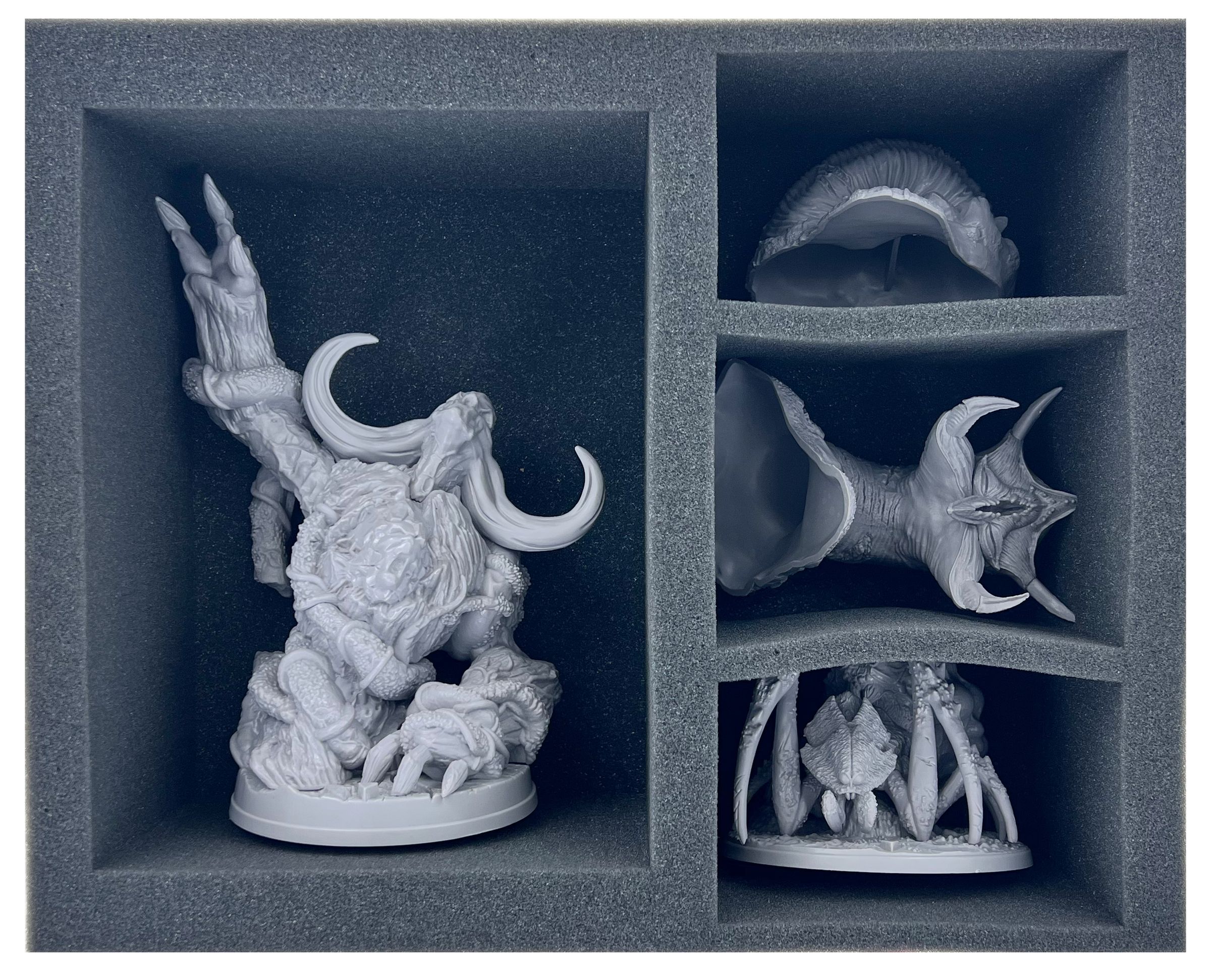 You can expect small, large and monstrous figures, quickly relieved of a few details and disfigured by scratches if stored incorrectly. To stop this, we have prepared these Storage Boxes and filled them to the brim with matching custom foam. So your figures and their secrets are safe from the outside world.