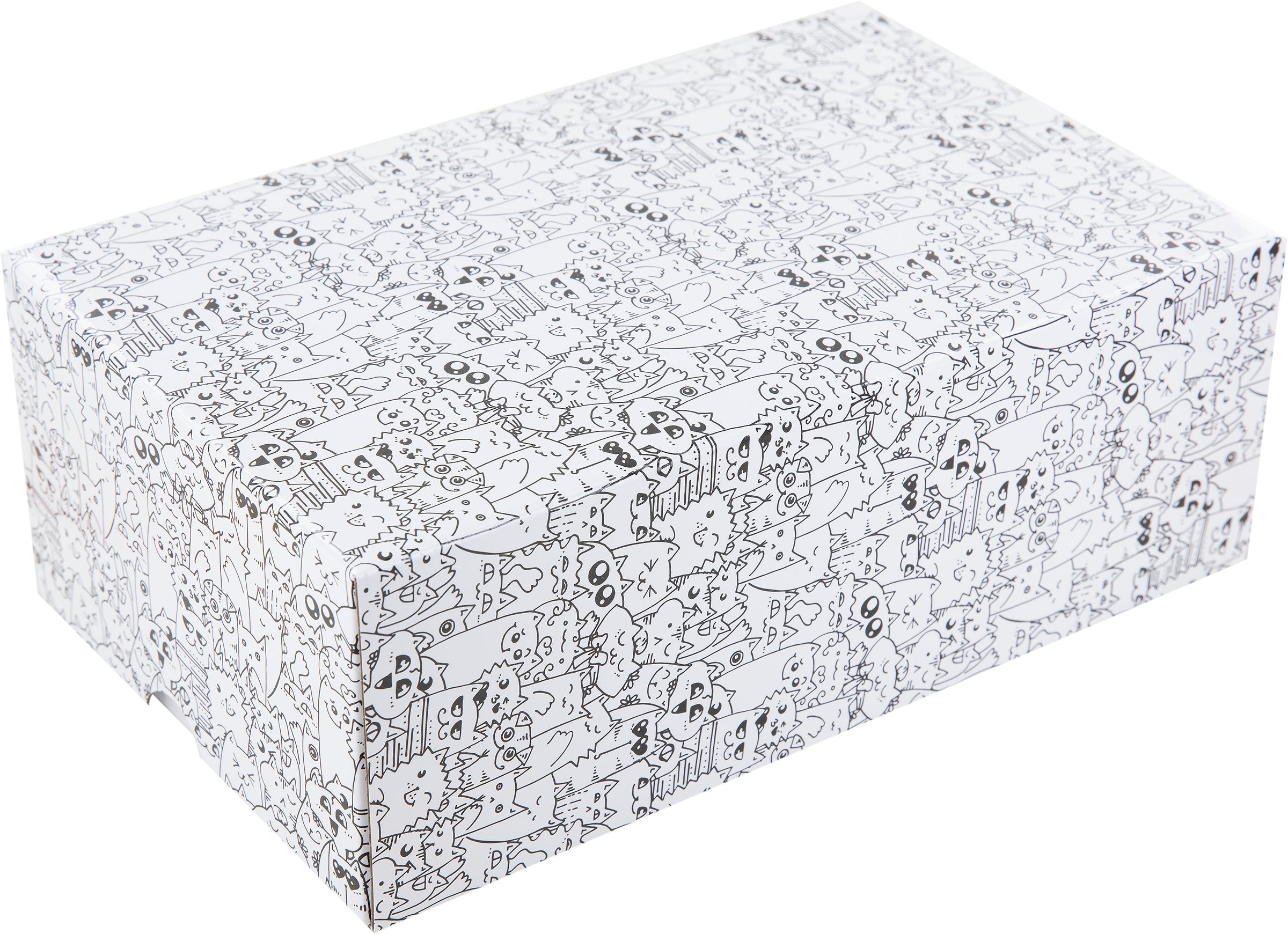 The bottom part is made of white-coated cardboard. A divider in the middle of the box separates it into two equal-sized compartments. This allows the cards to be lined up neatly without getting mixed up during transport.