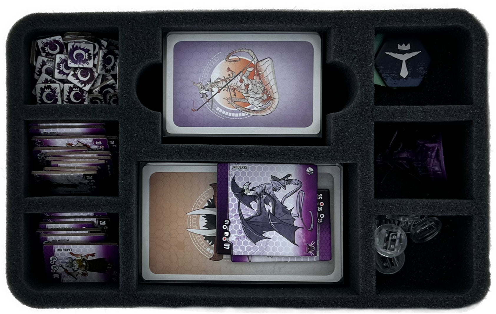 - 1 Half-Size foam tray for the Moon Princess miniature, regular-sized game cards, tokens and large-sized tarot cards. (HSMFEP050BO)