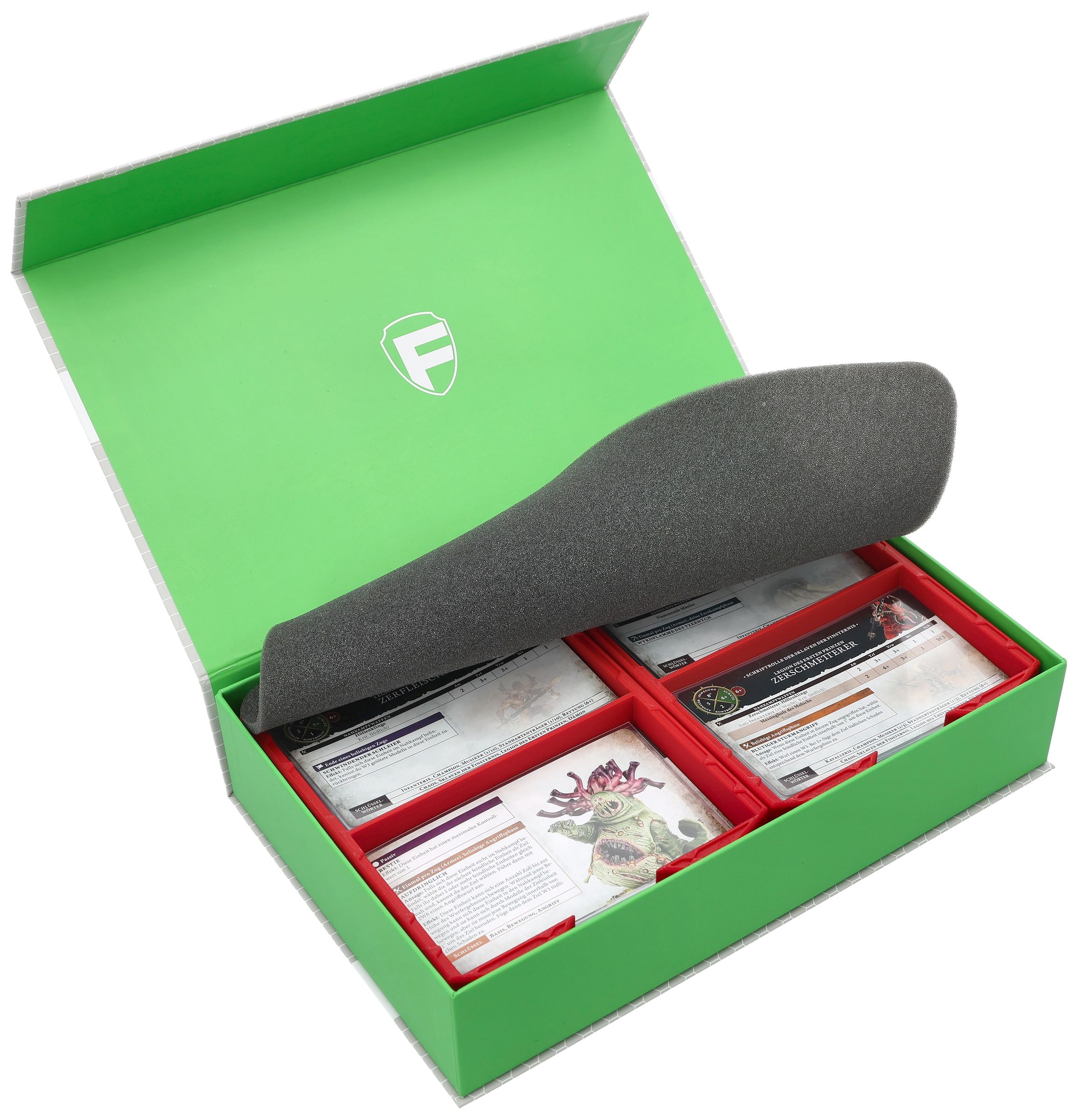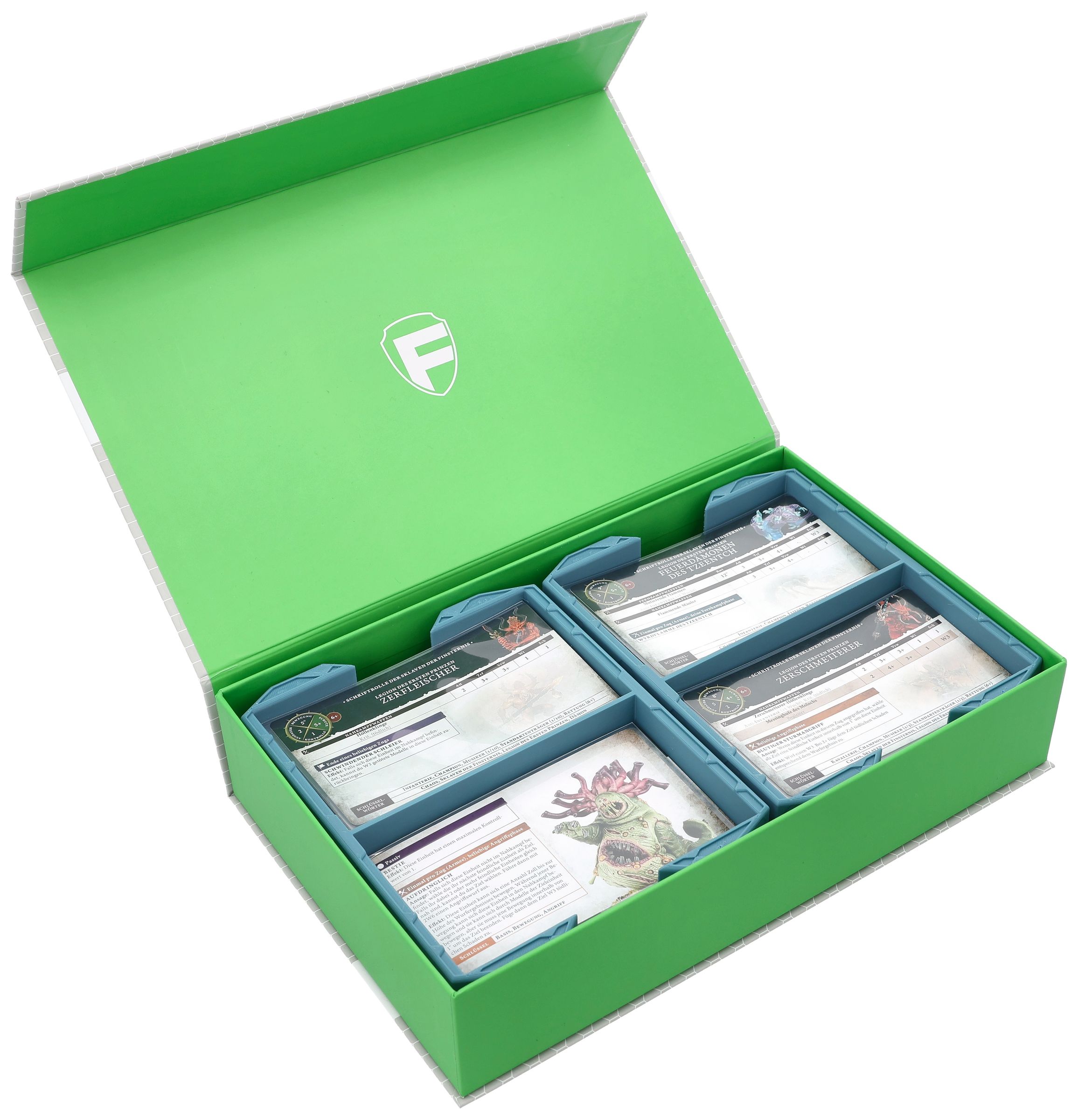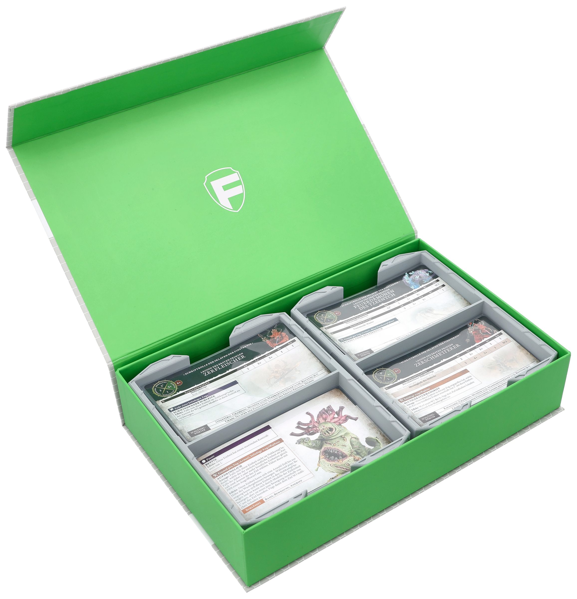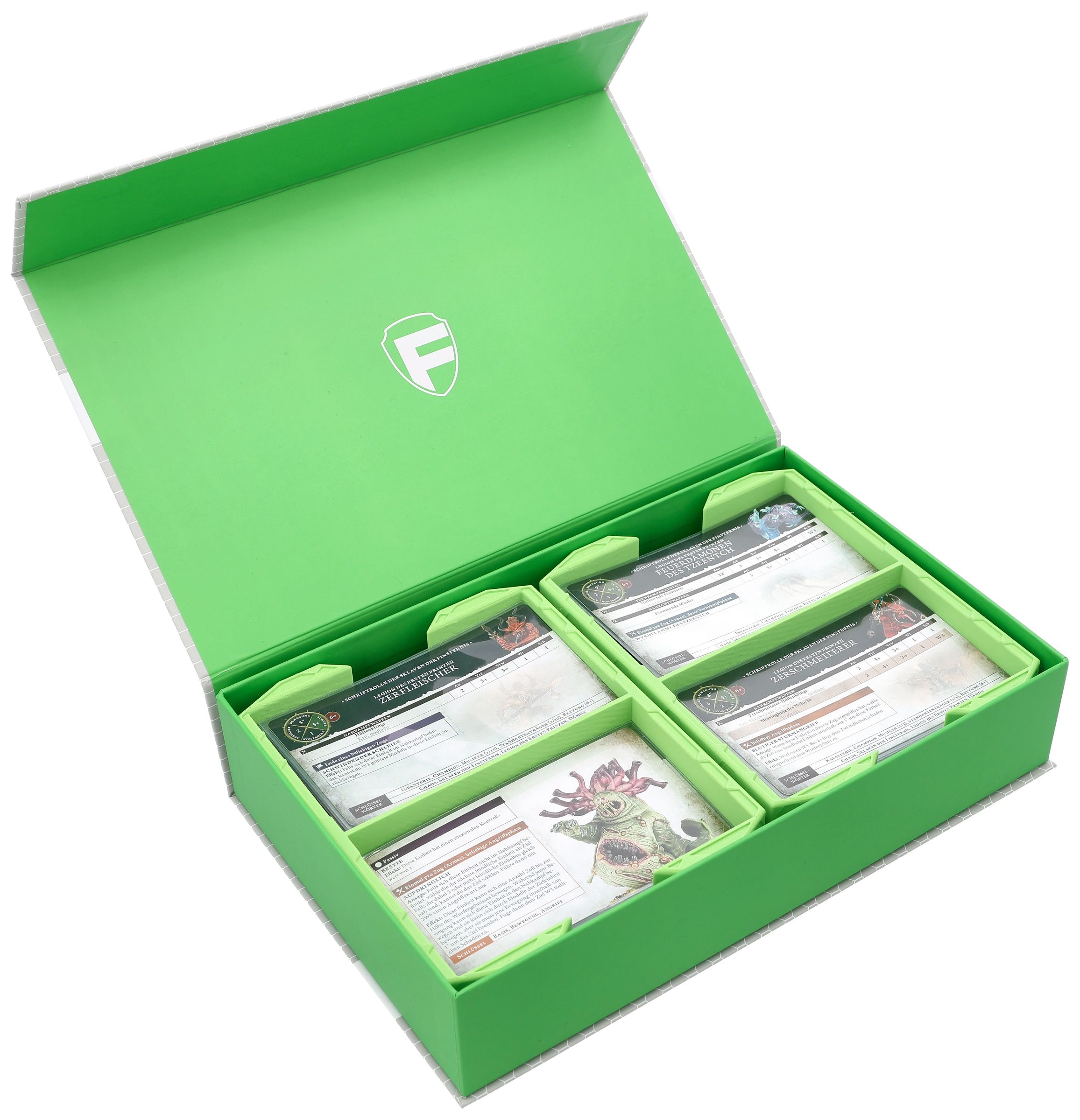 This green Feldherr Magnetic Box with card holder inserts is the ideal solution for storing your Warhammer Age of Sigmar Warscroll Cards in 70 x 121 mm format safely and neatly. With the custom-fit card holder, you can keep your cards neatly organized and ready to hand at all times - whether you're playing, transporting them or neatly sorting them on your shelf.