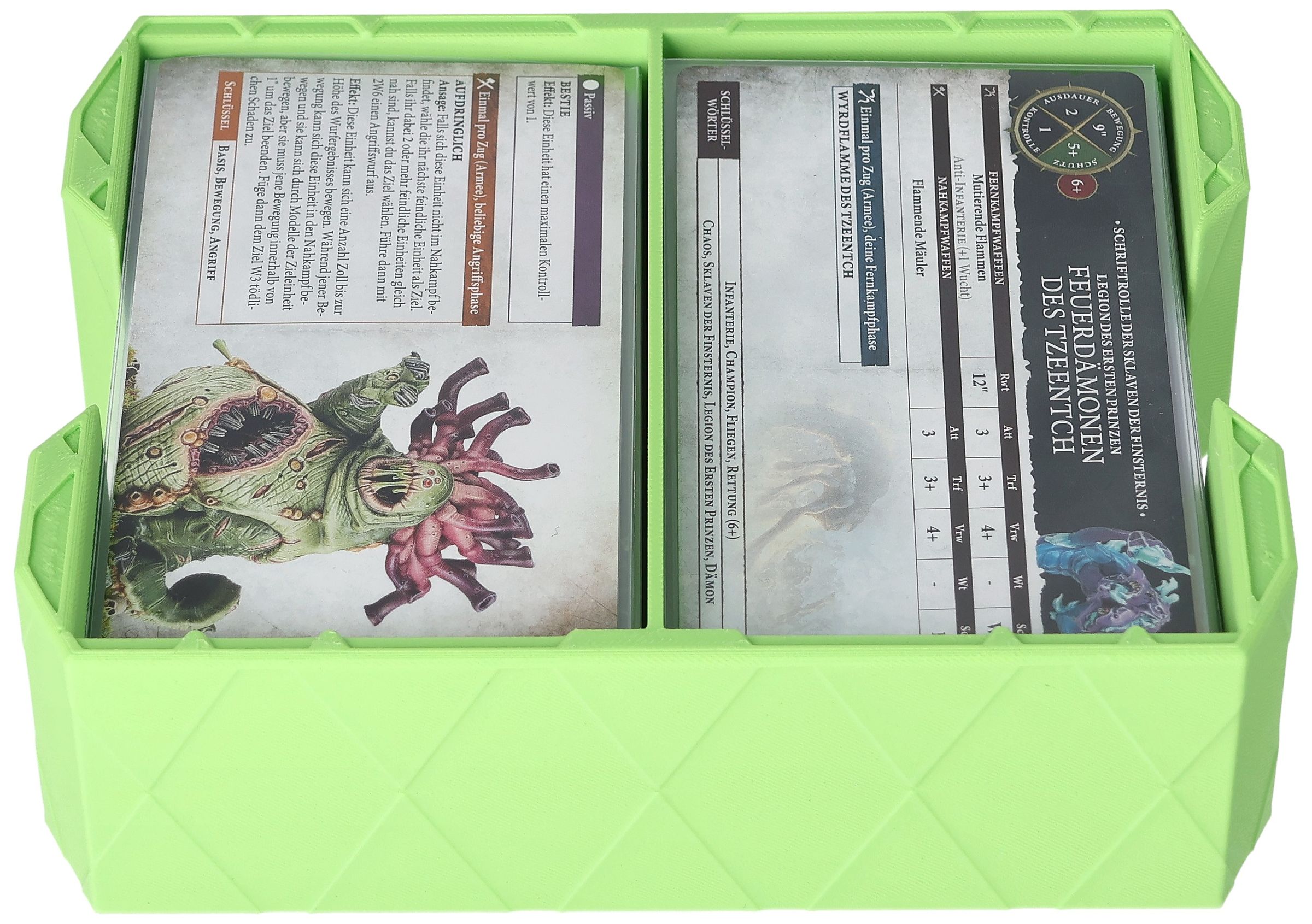 • The green Magnetic Box with 2 card holder inserts offers enough space even for larger Warhammer Age of Sigmar Warscroll Cards collections of various factions.
