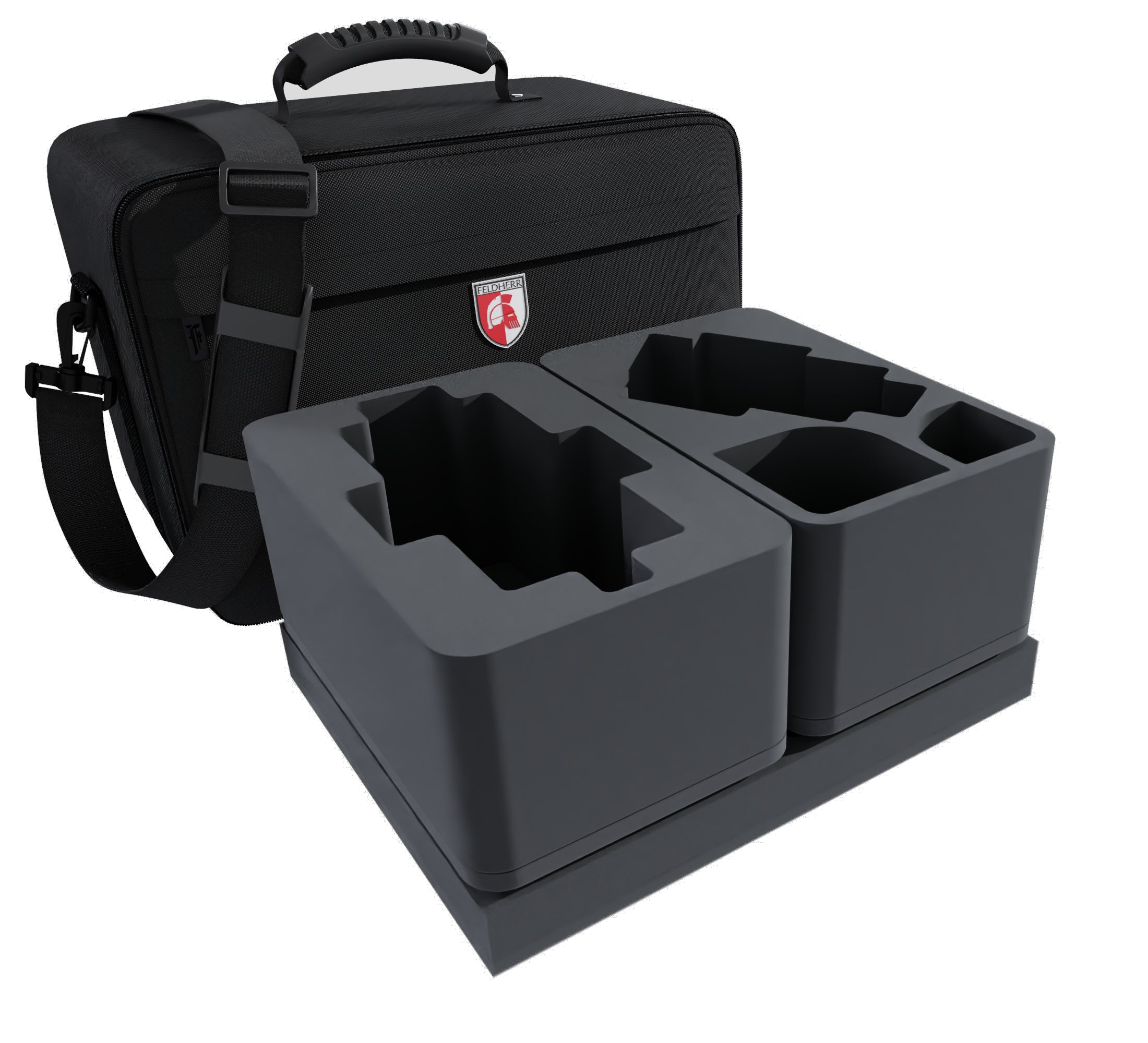 Of course, the inserts fit exactly into the sturdy MAXI PLUS bag. This is made of particularly hard-wearing material. Padded side panels and a reinforced base also ensure that your models are well protected from external influences, even when being transported by car or train. In addition to the large main compartment, the bag has a small zippered compartment at the front. There is a rubberized, handy carrying handle on the top. If you prefer to have your hands free, you can also use the bag as a shoulder bag thanks to the hard-wearing, detachable shoulder strap.