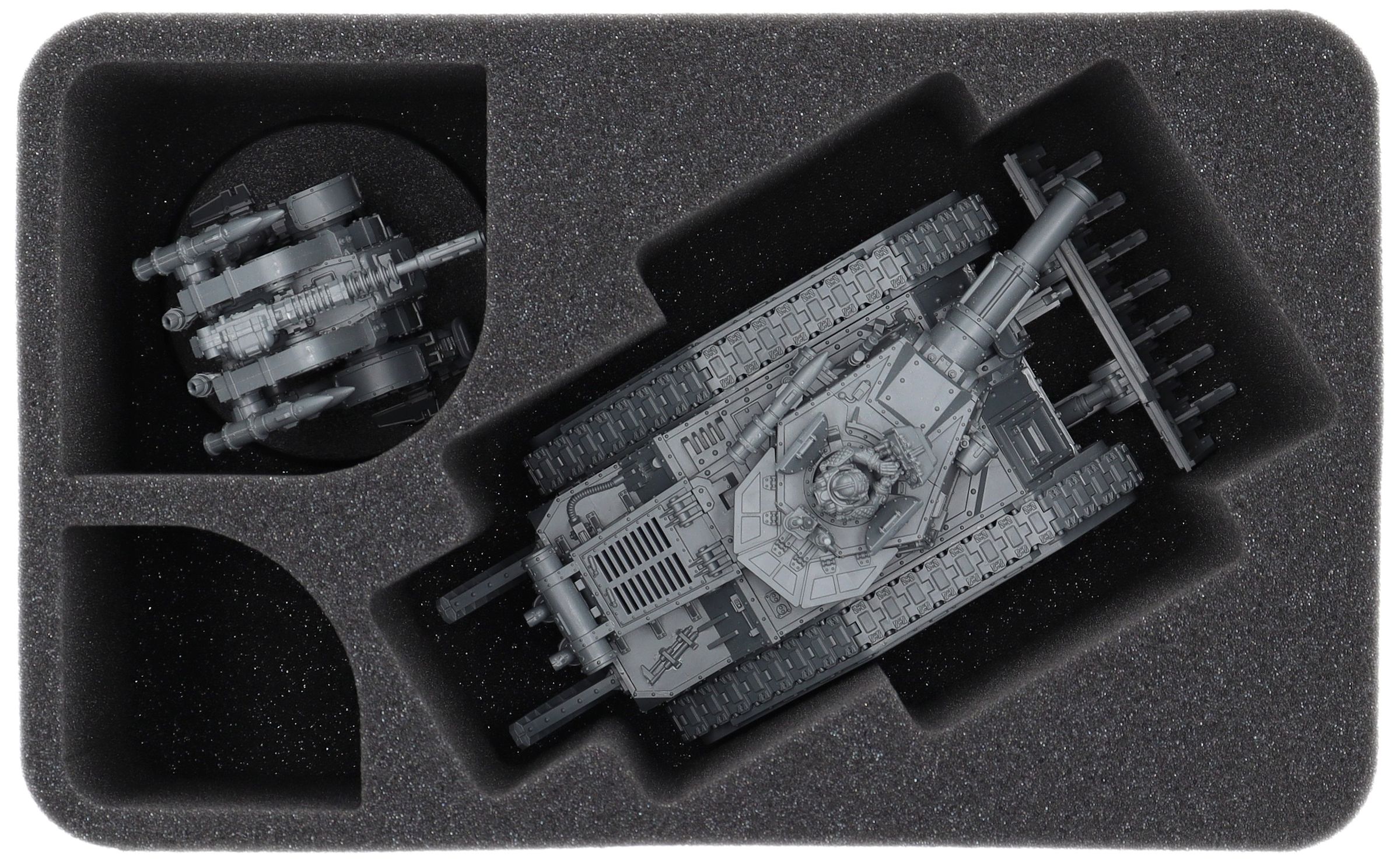 • 1 Half-Size foam tray with 3 compartments for the Aethon Heavy Sentinels and the feared Leman Russ Assault Tanks (HSMFMD120BO)