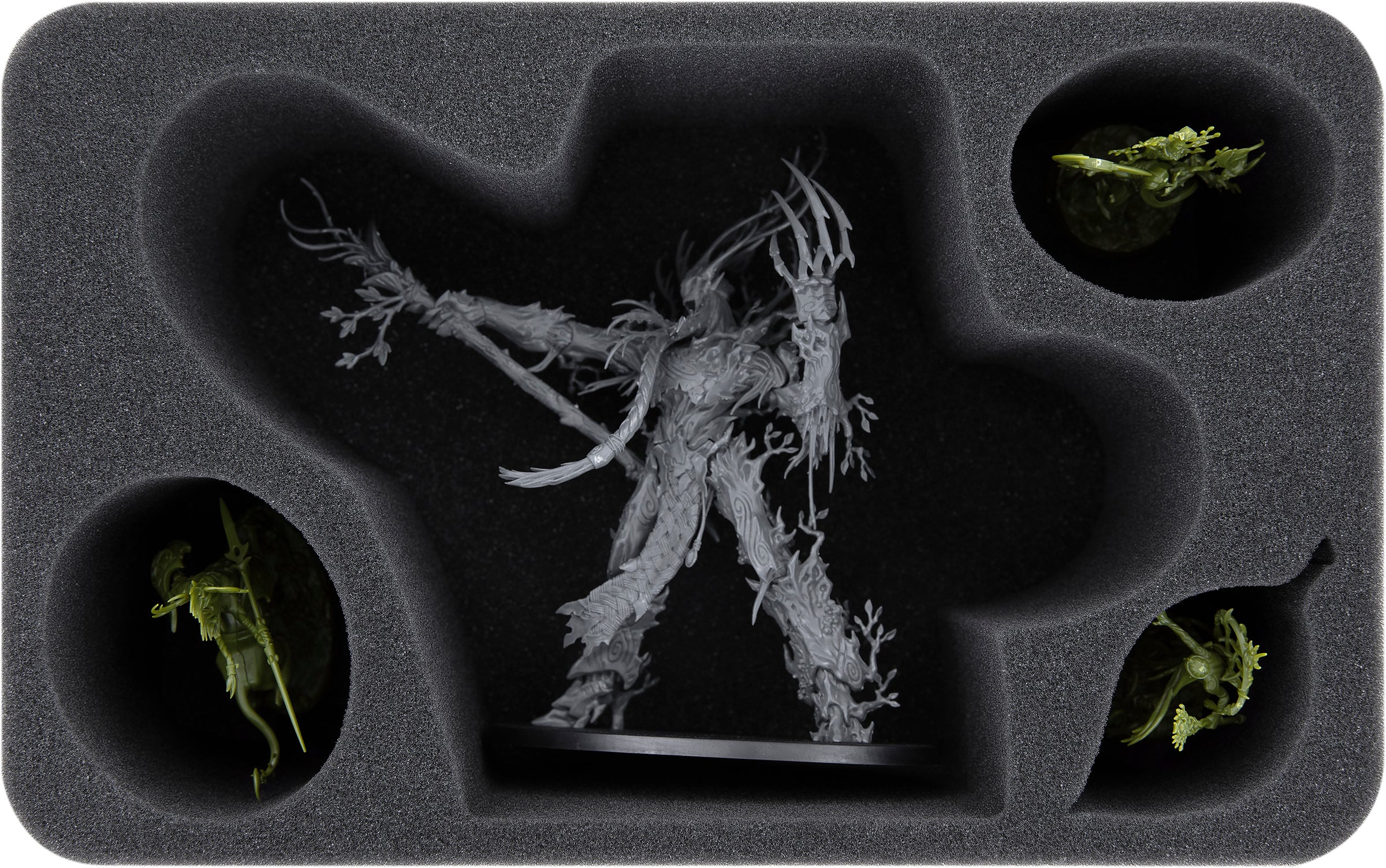 - 2 Half-Size foam trays, each with 4 compartments for Treelords, Treelord Ancients, Spirits of Durthu, Spite-Revenants or Tree-Revenants (HSMEXL100BO)