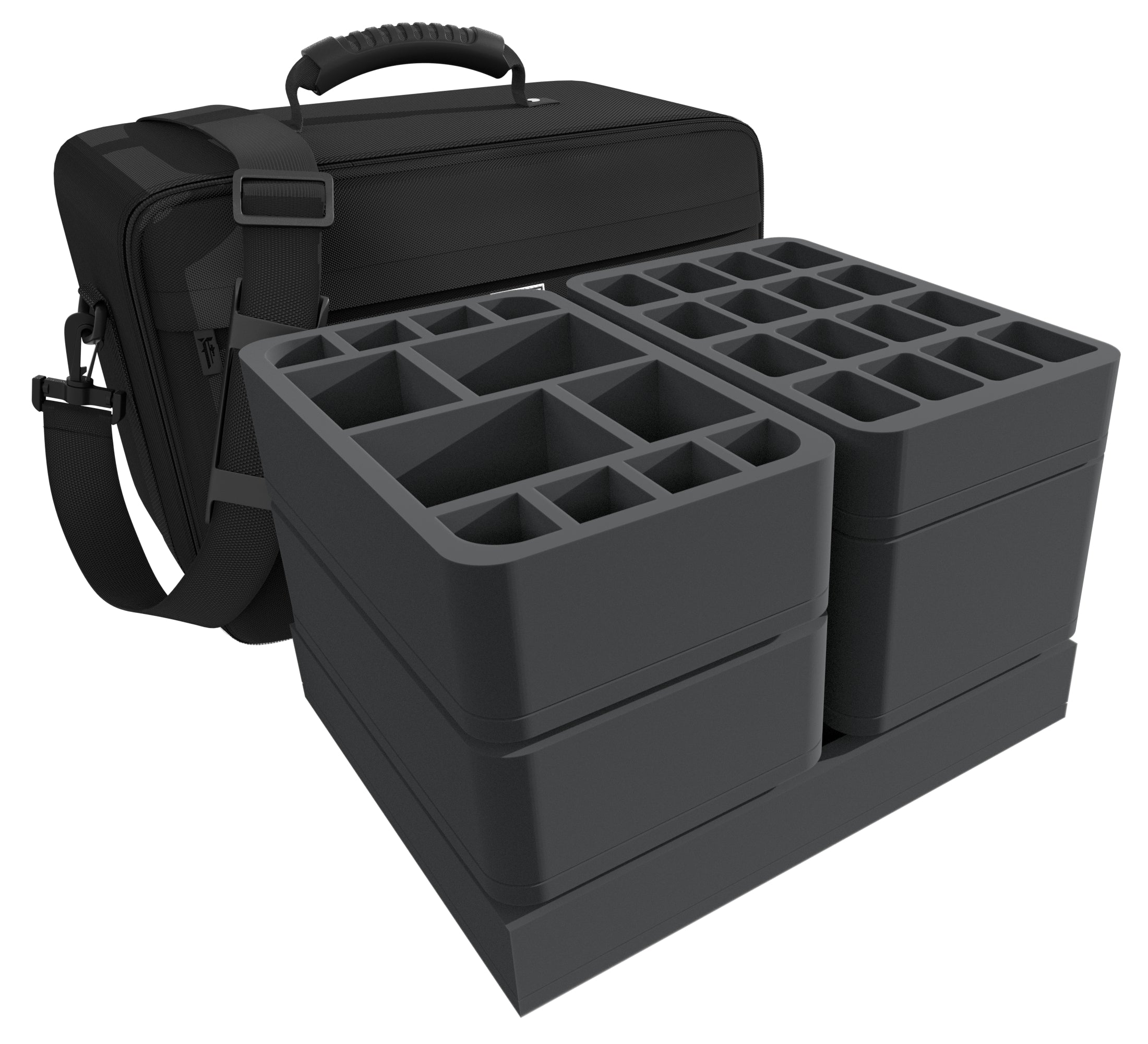 No less than 2 Half-Size inserts offer you with 12 compartments each enough space for T'au Empire Commander models (X85 Enforcer and X86 Coldstar Battlesuit with flying base), XV88 Broadside Battlesuits, and for small models like Pathfinder and Drones.