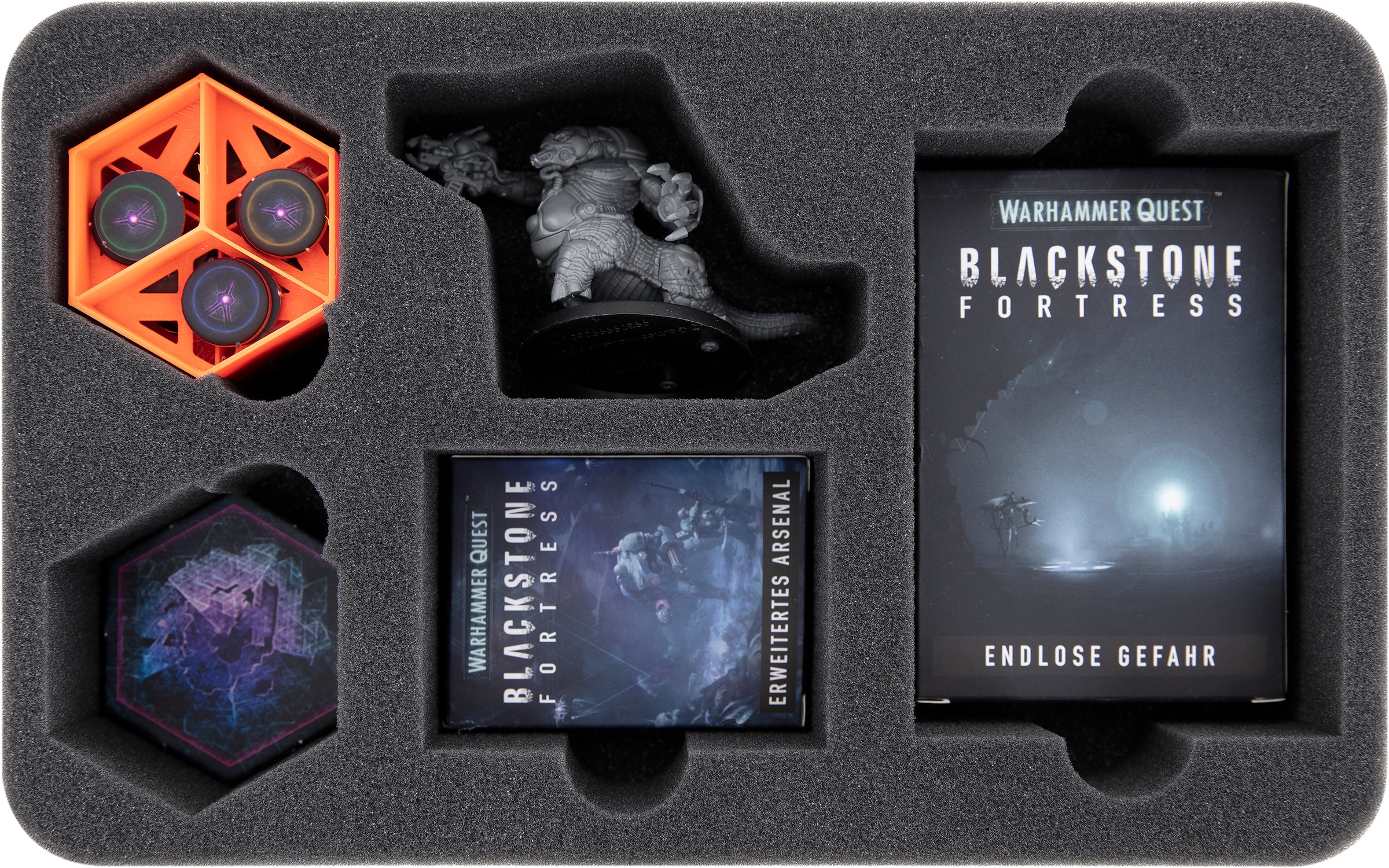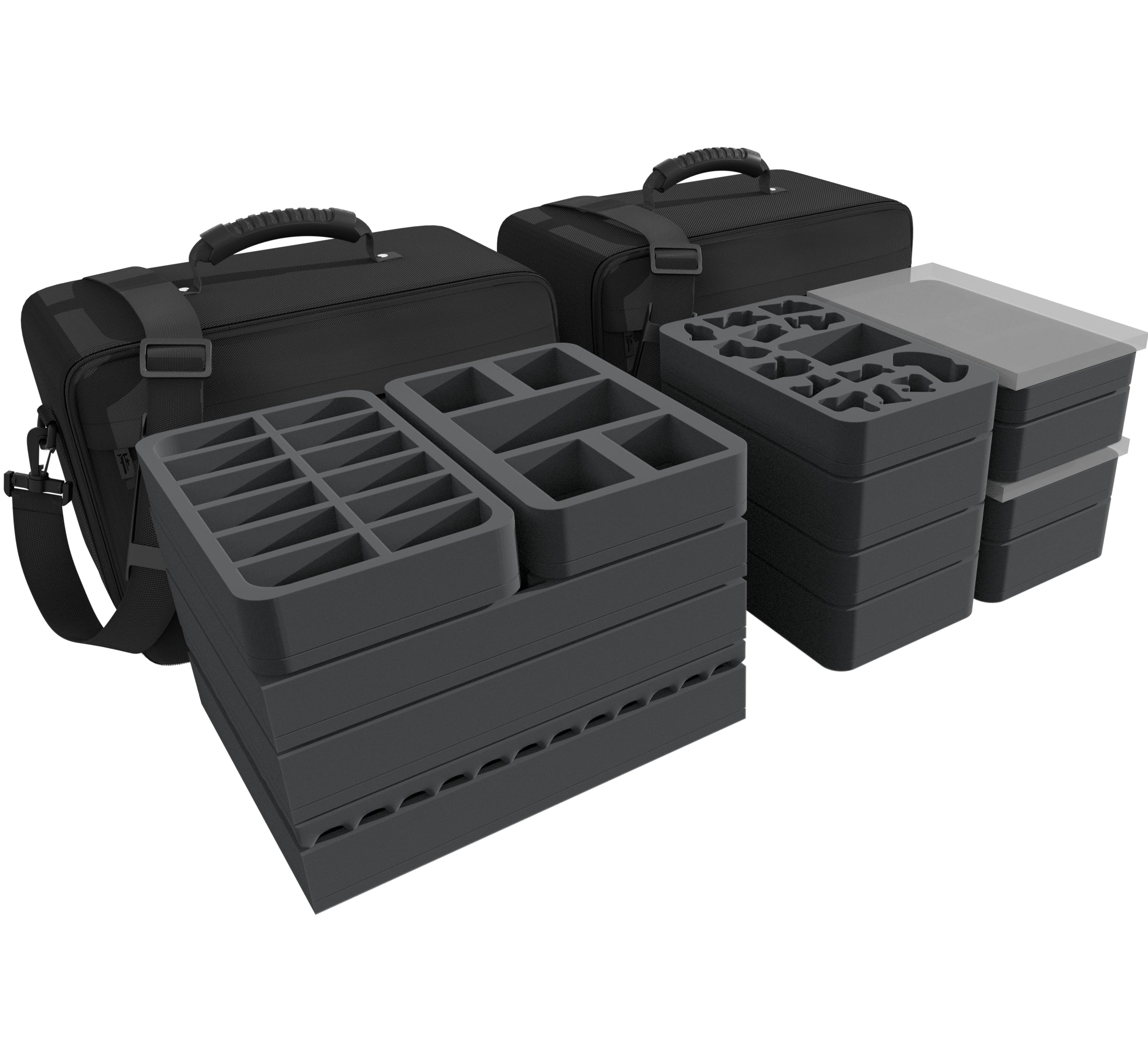 Two Feldherr MAXI PLUS bags, filled with four Full-Size and ten Half-Size foam inserts, ensure that your Blackstone Fortress collection arrives complete and undamaged at the tabletop. Everything is safely stowed away and can be easily transported. And what is especially important with this multitude of miniatures, tokens and tiles: You always keep the overview.