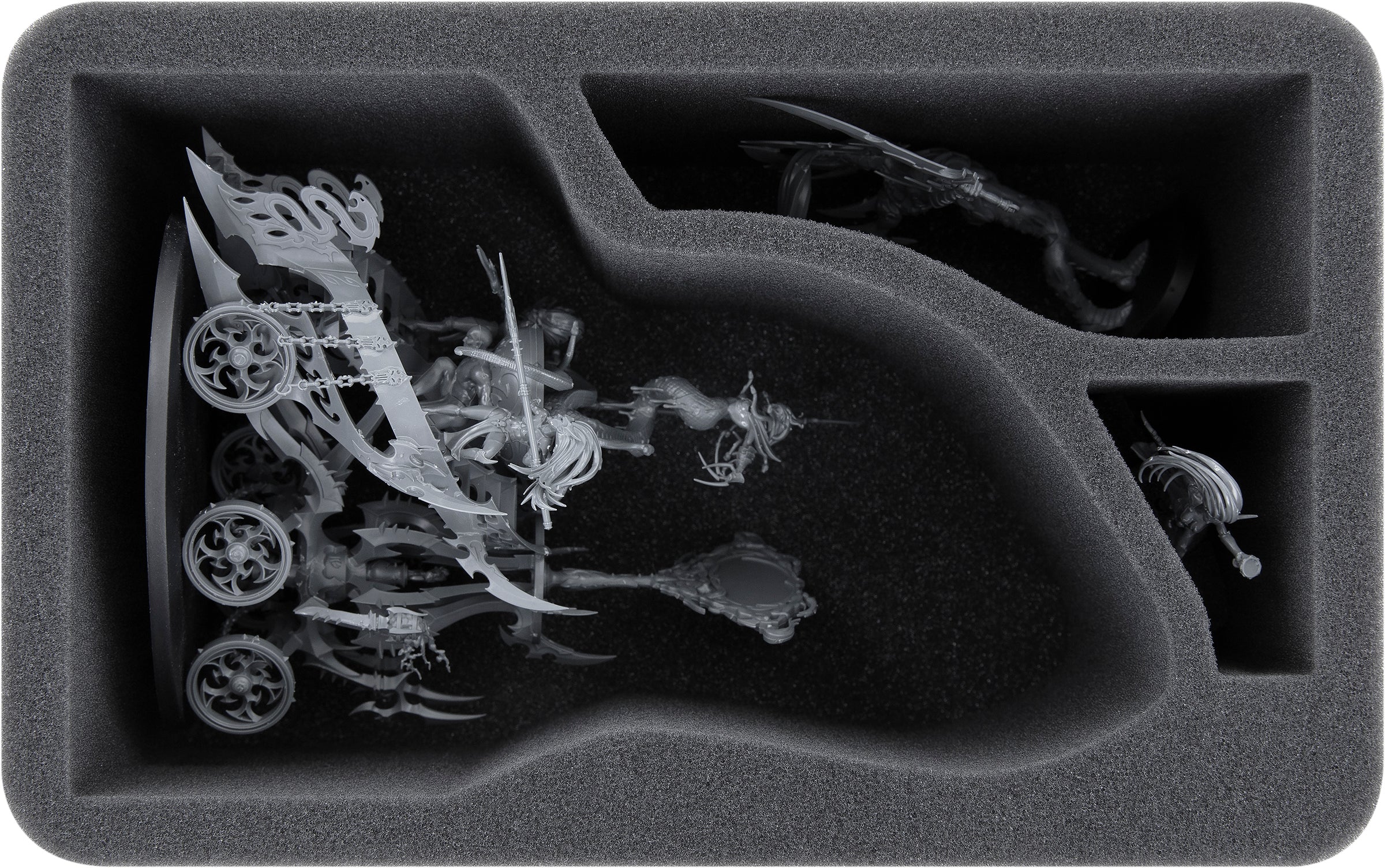 It doesn't matter whether it's the Slaughter Queen on Cauldron of Blood or the Melusai Blood Stalker. Each miniature gets a custom-fit compartment. The custom-fit cut compartments of soft foam reliably protect your miniatures from damage and ensure that your painted units arrive safely at the gaming table without scratches.