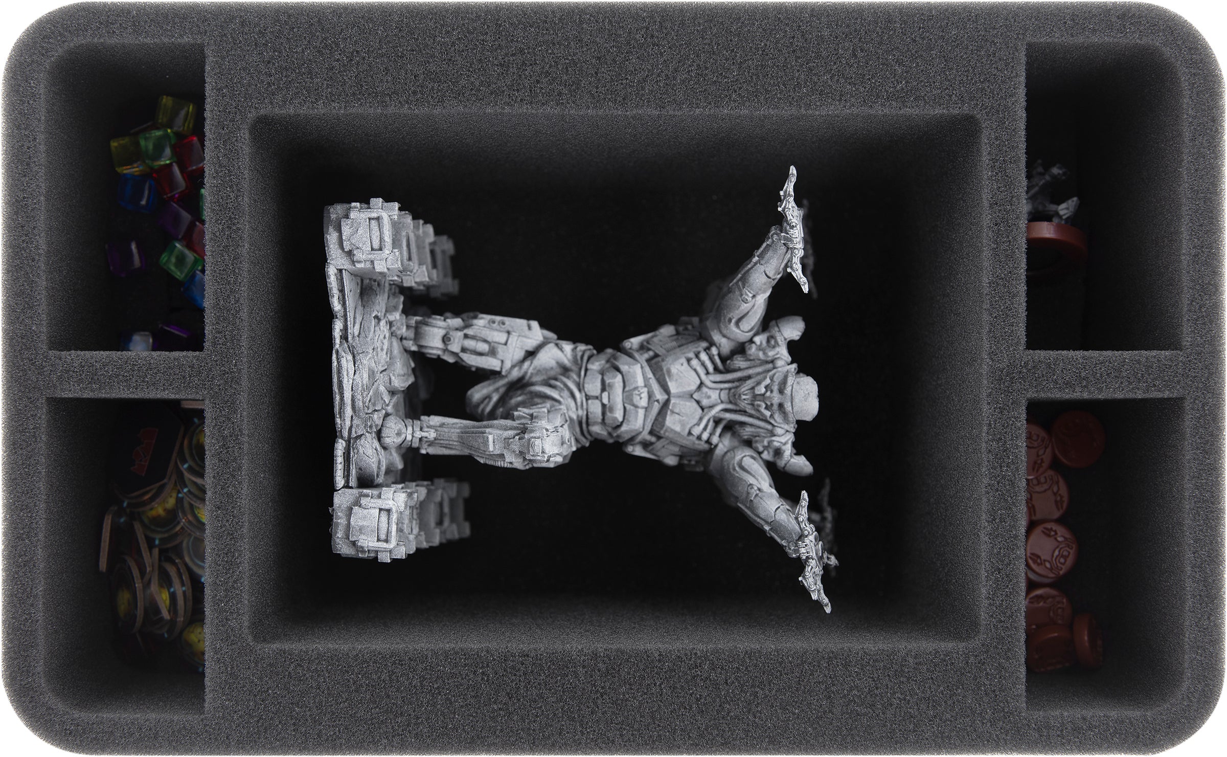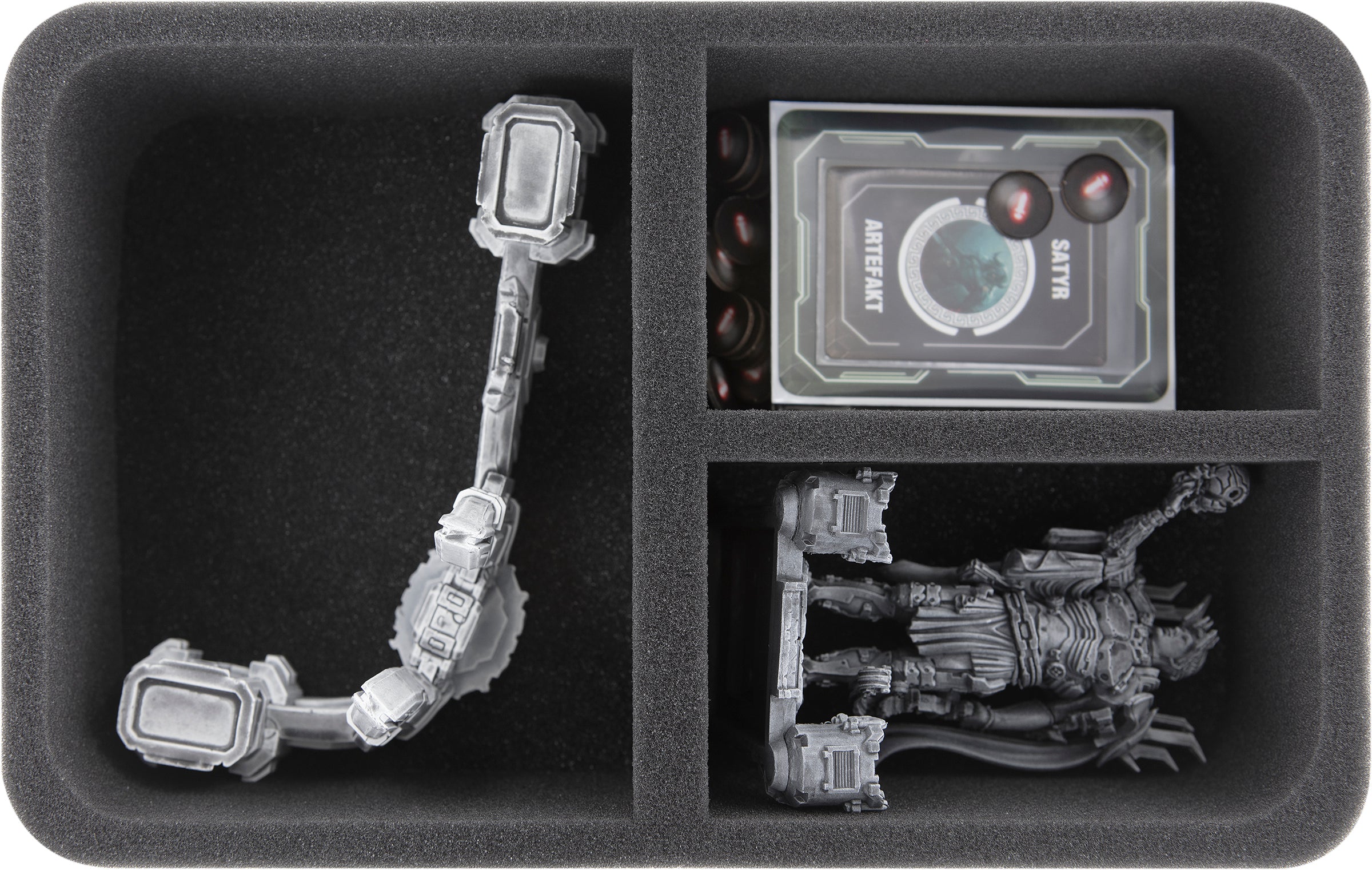 All 33 miniatures from the three expansions find a safe place on four foam inserts. From the monumental Atlas to the Wall of Troy to the soldiers - you get the right compartment for every miniature.
