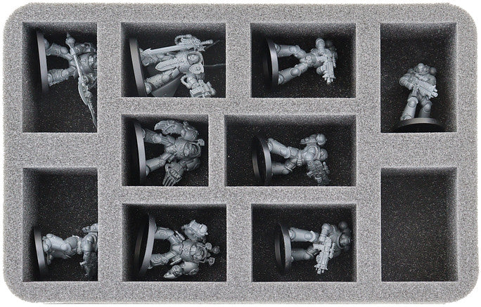 - 1 Half-Size foam tray with ten compartments for Intercessors, Terminators (HS045BF05BO)